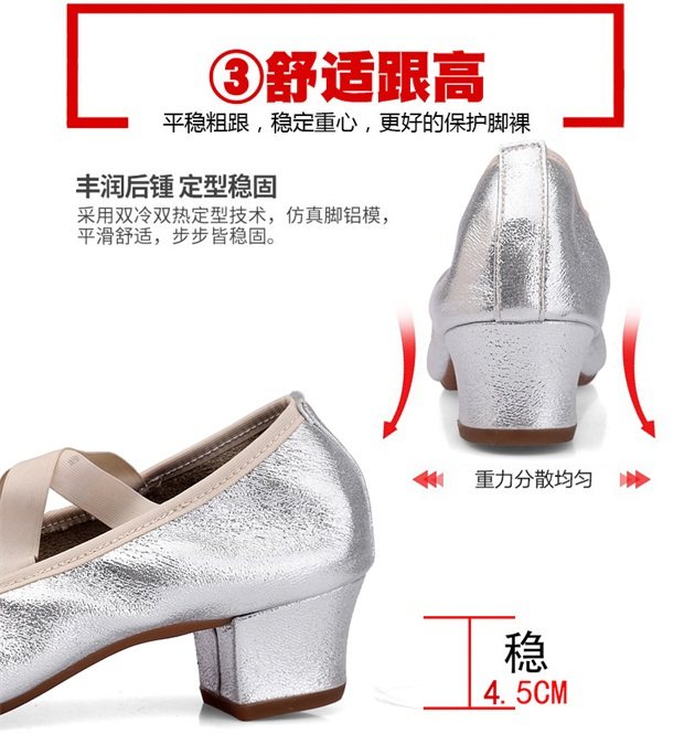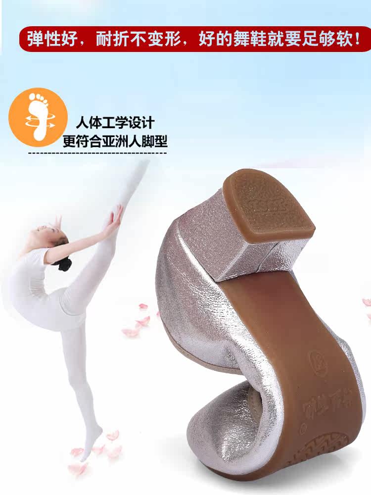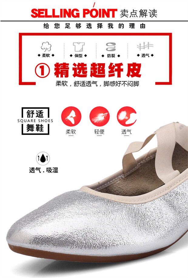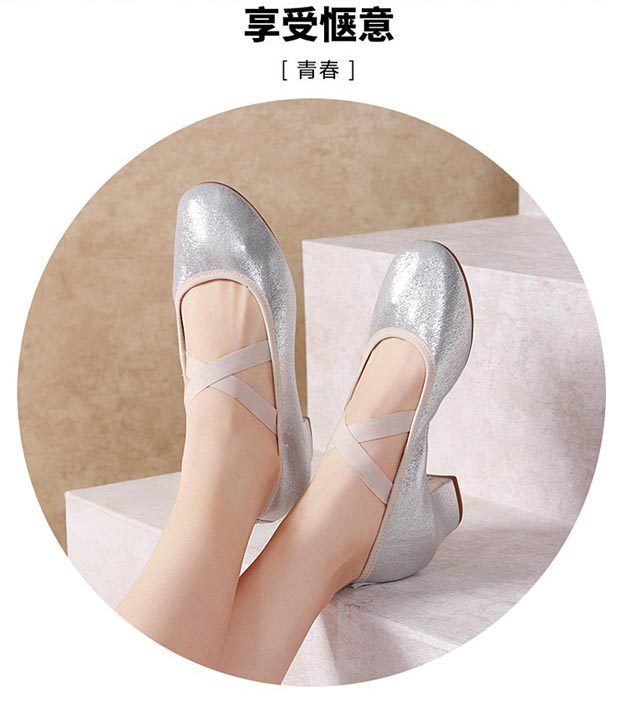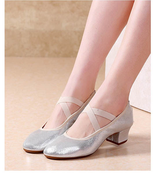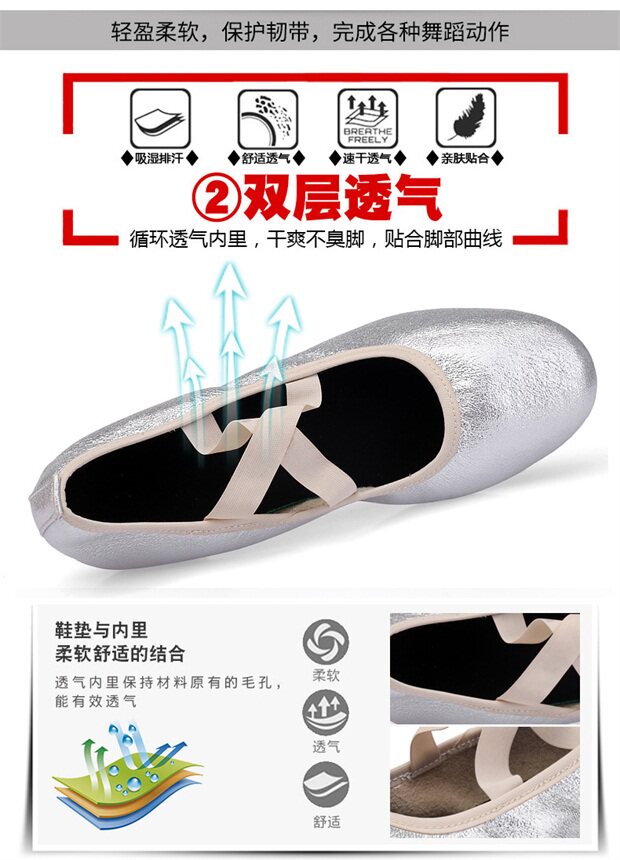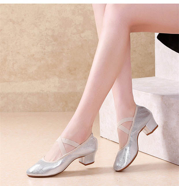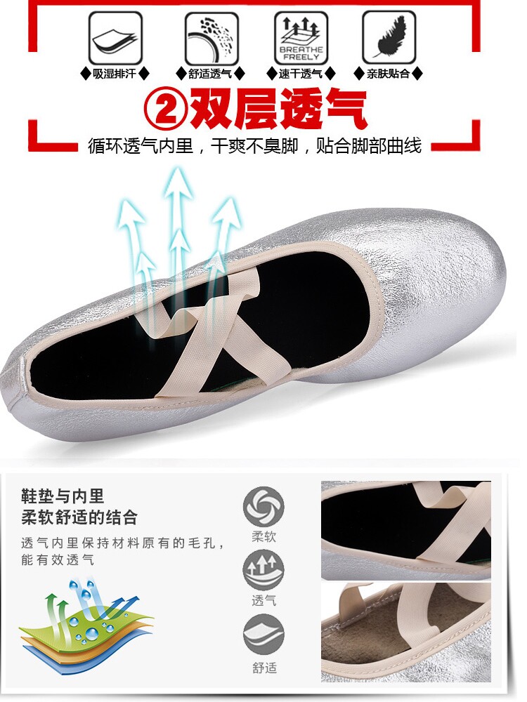 Серебряные танцующие дышащие нескользящие туфли, мягкая подошва