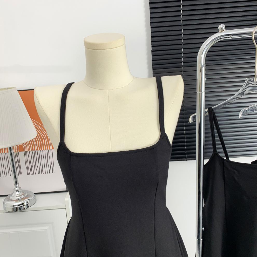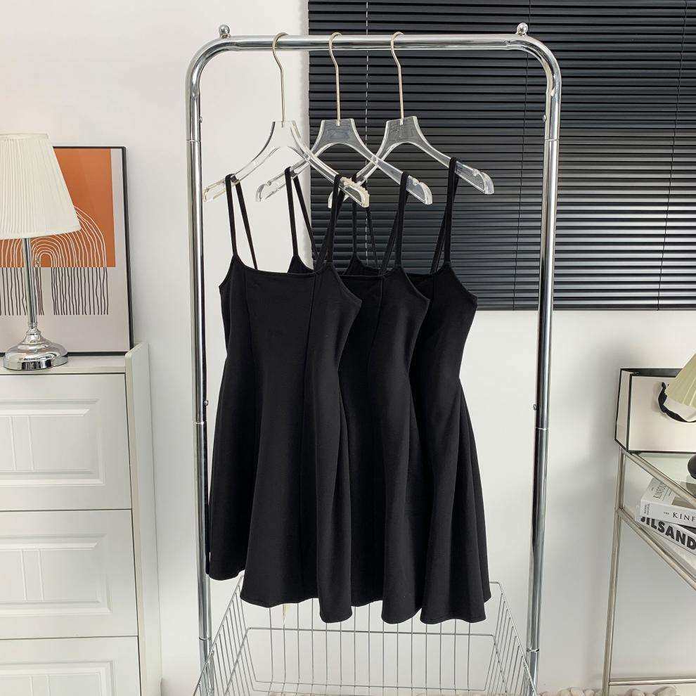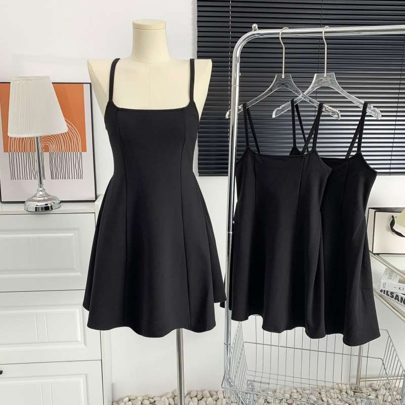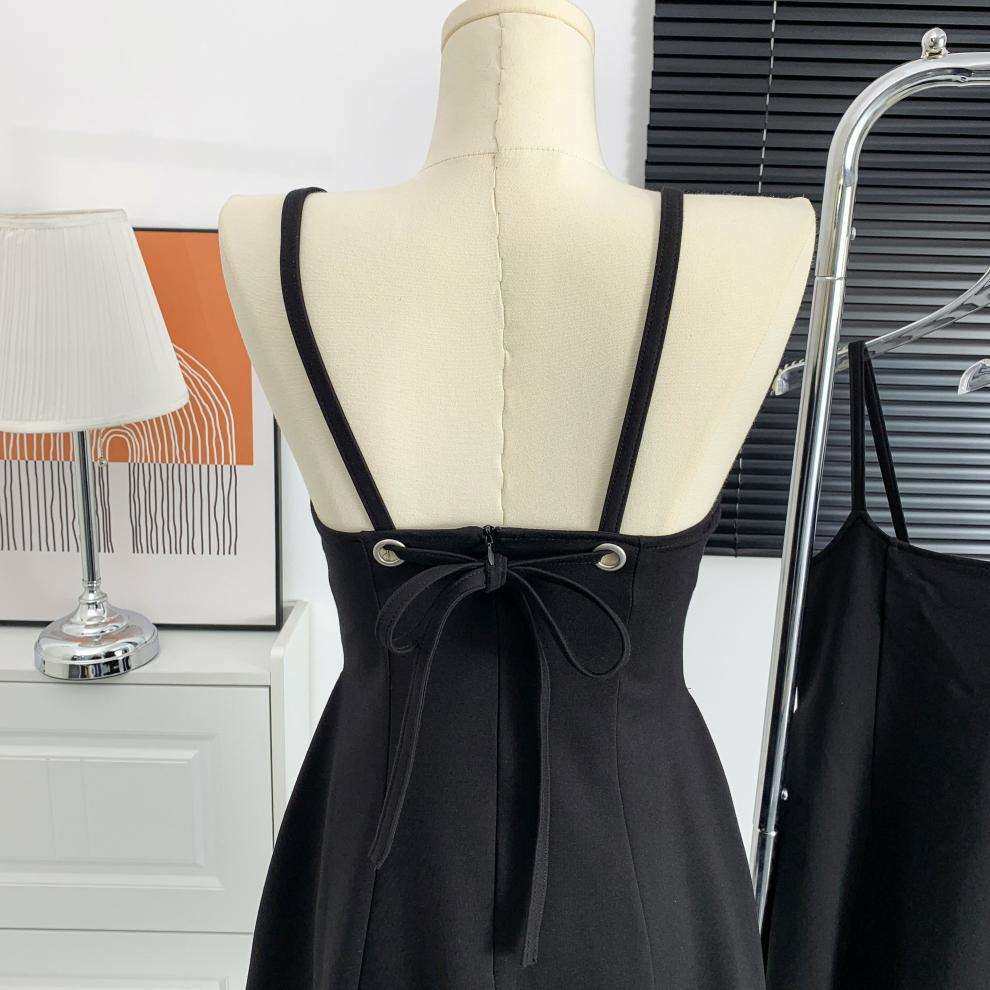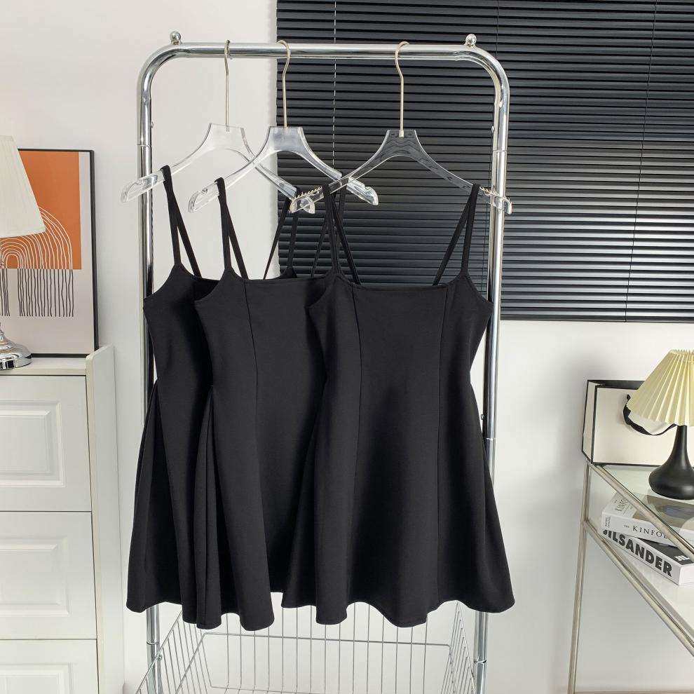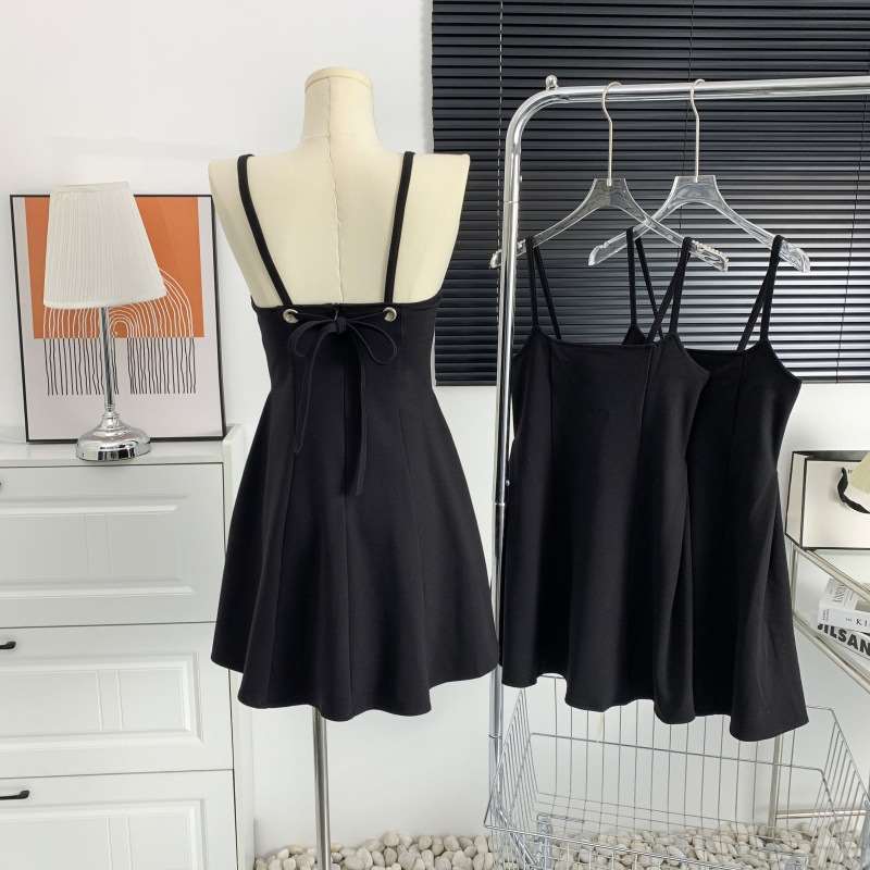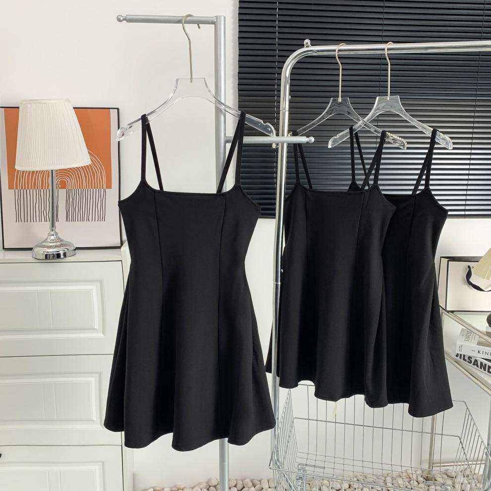 Черное платье для ремня женская летняя новая а-линия короткая юбка Ele