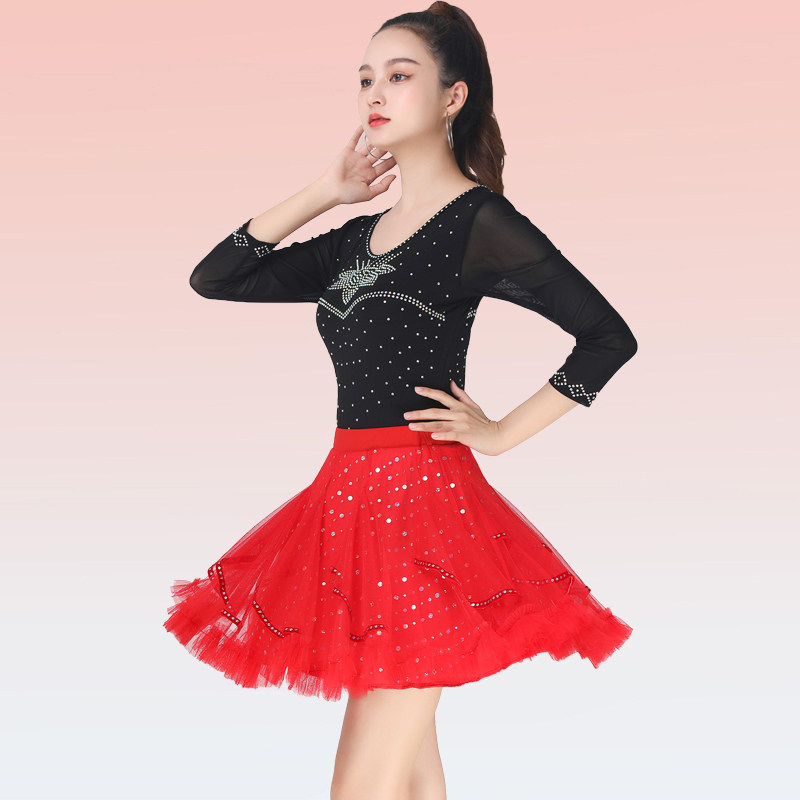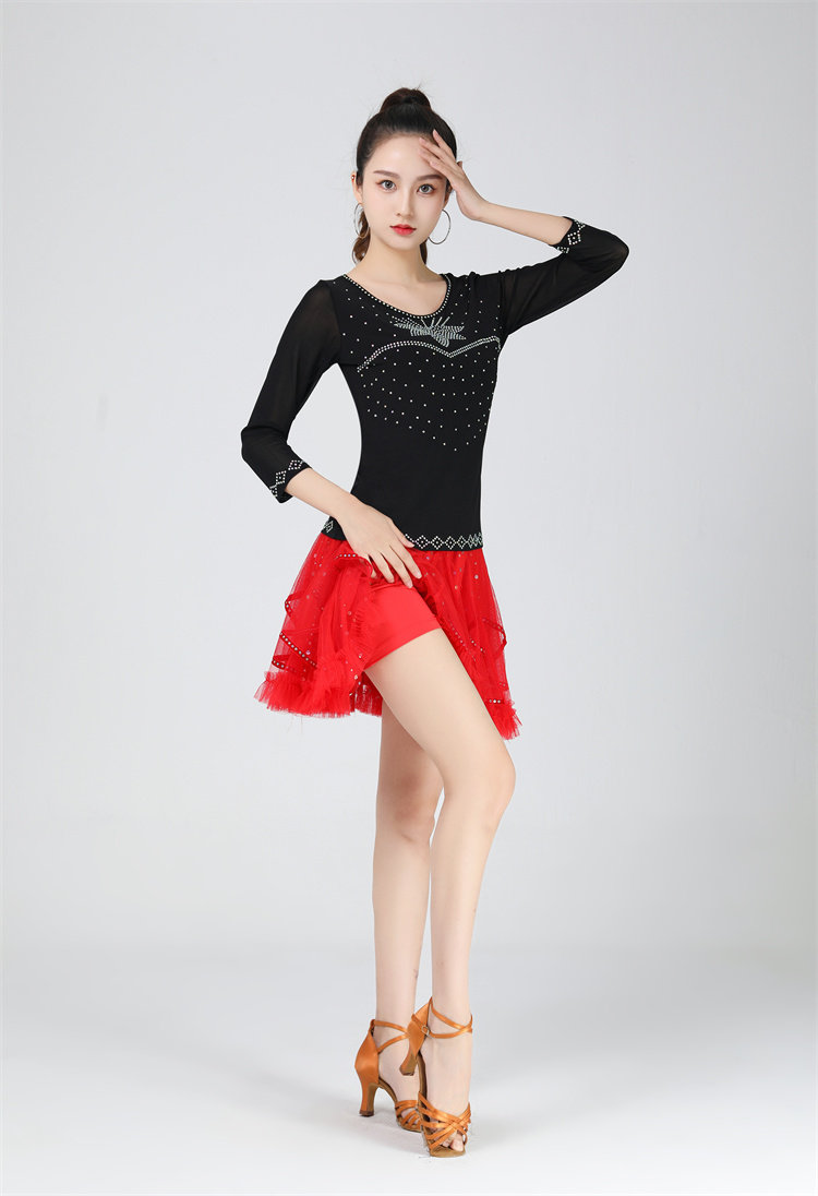 Гитта танцевальная одежда Новый цвет бриллианты танец, круглая шея с тремя штормами квадратная квадратная танцевальная сеть