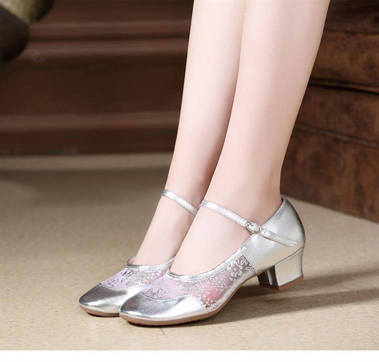 Обувь, танцующие серебряные туфли, из натуральной кожи, мягкая подошва