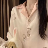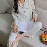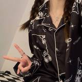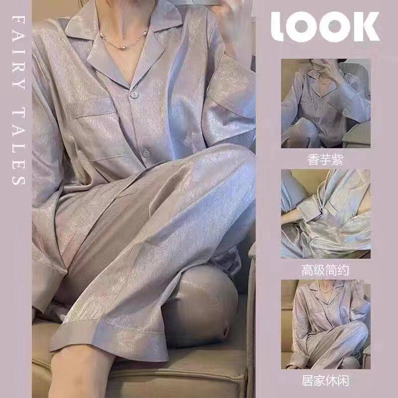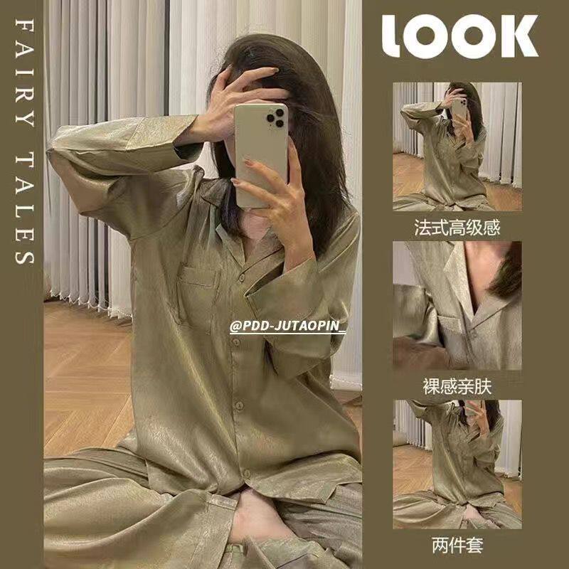 Осенняя пижама, шелковый лонгслив, мягкий комплект, французский стиль, изысканный стиль