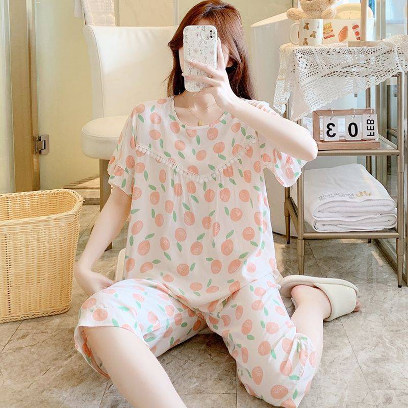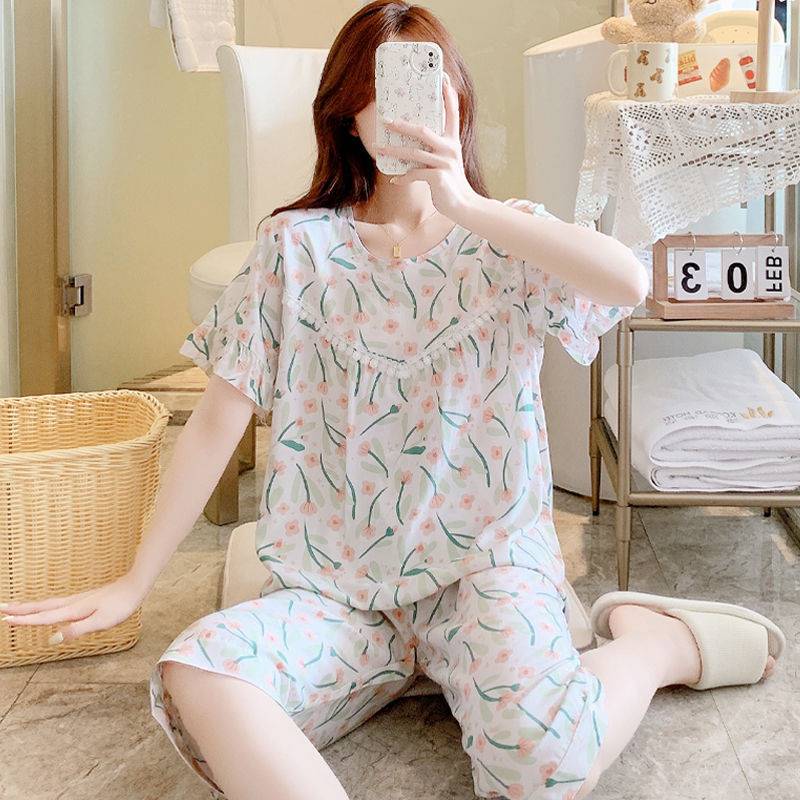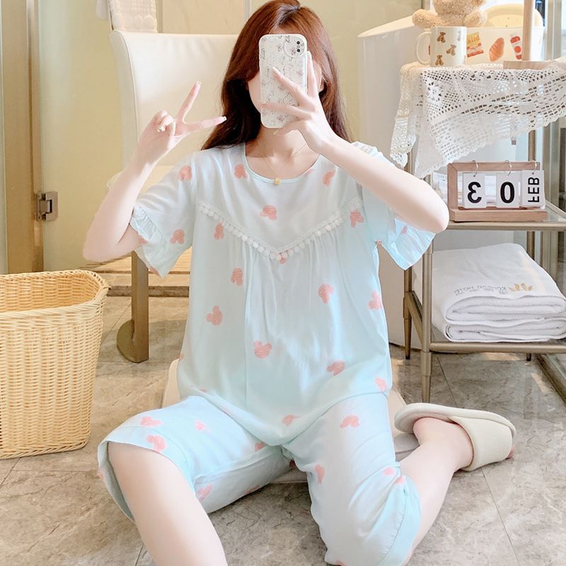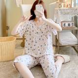 Летняя пижама, штаны, комплект, короткий рукав, большой размер, в корейском стиле