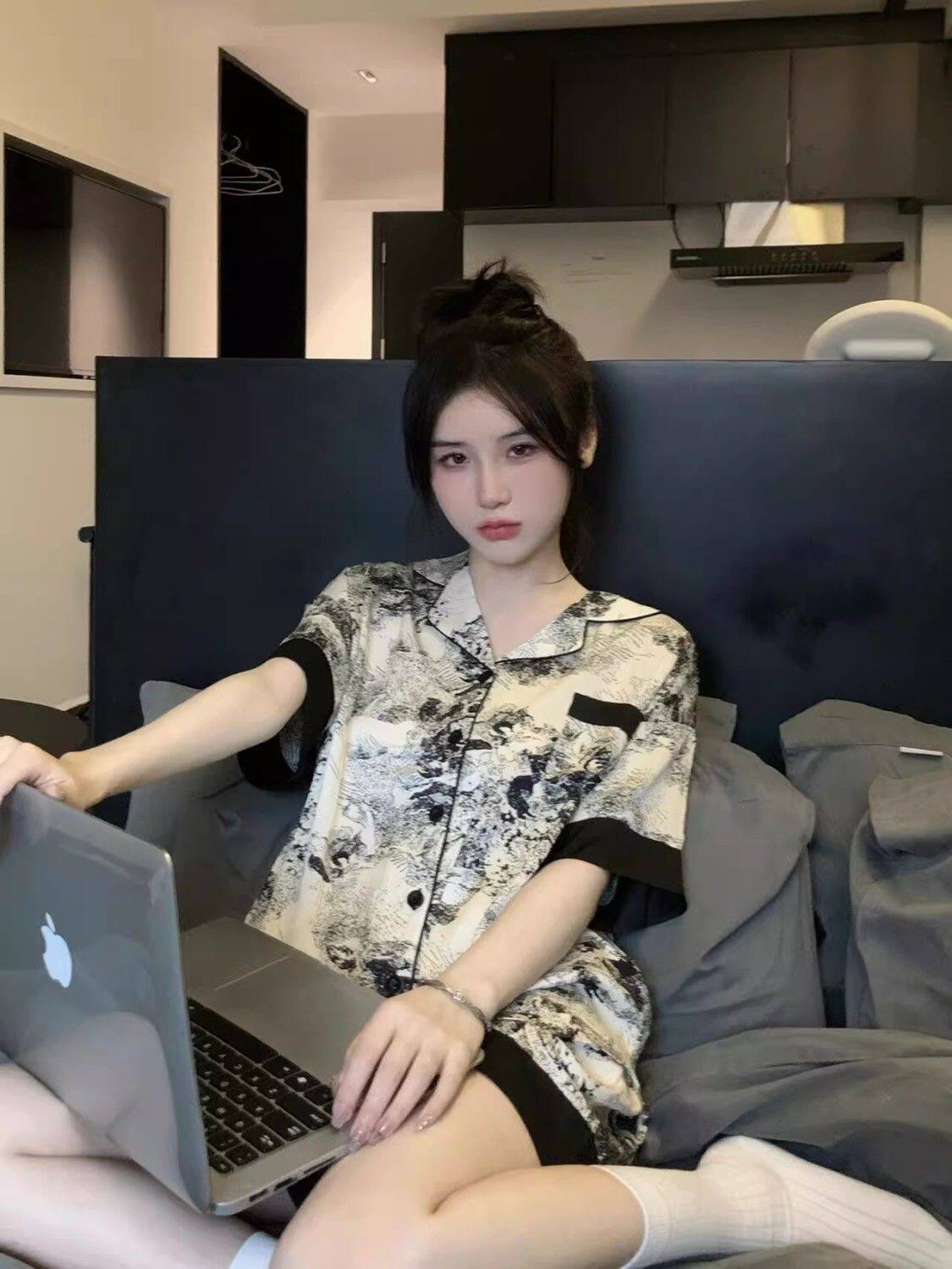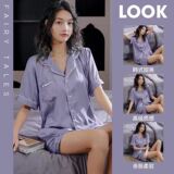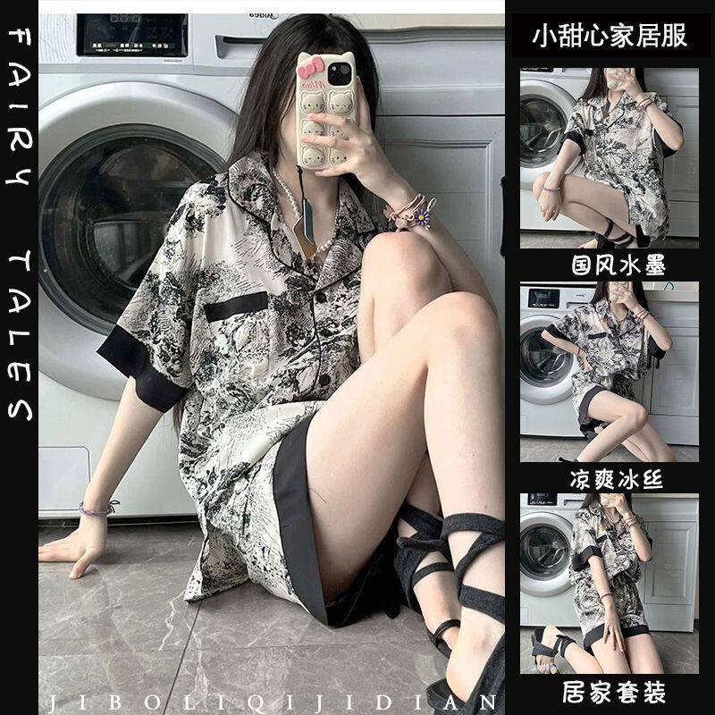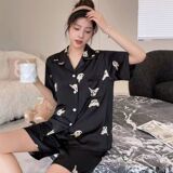 Тонкая шелковая пижама, брендовый милый комплект, короткий рукав
