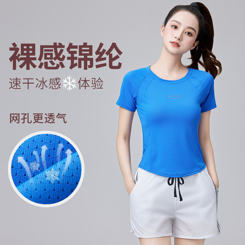 Летняя быстросохнущая дышащая танцующая спортивная футболка, короткий рукав, для бега