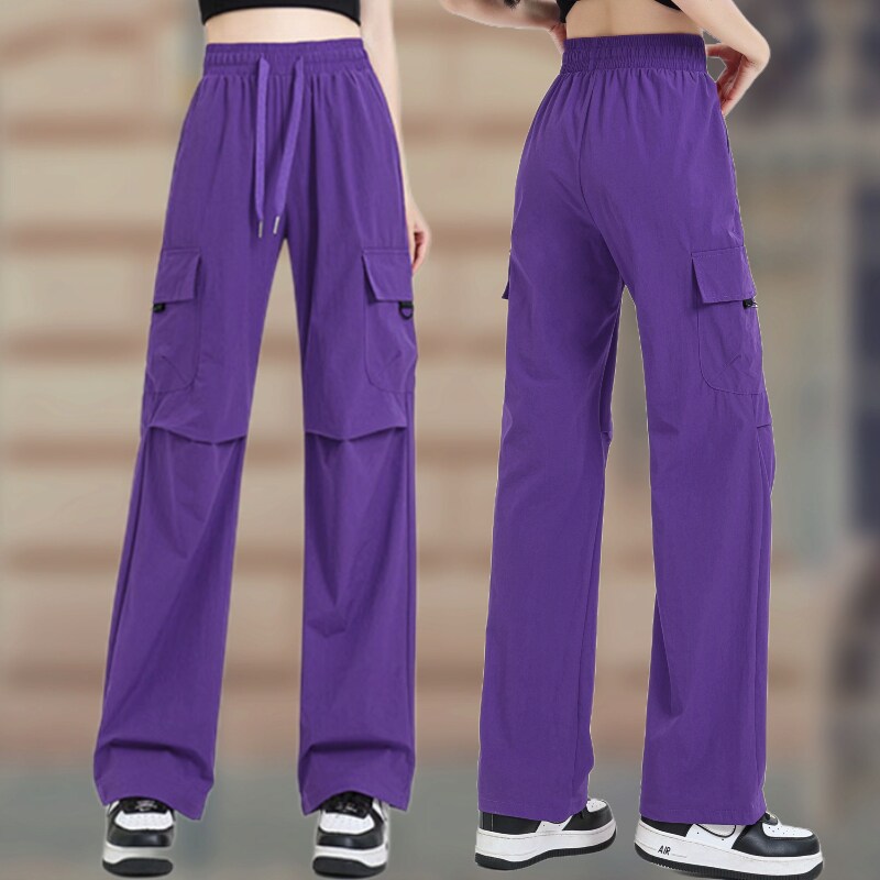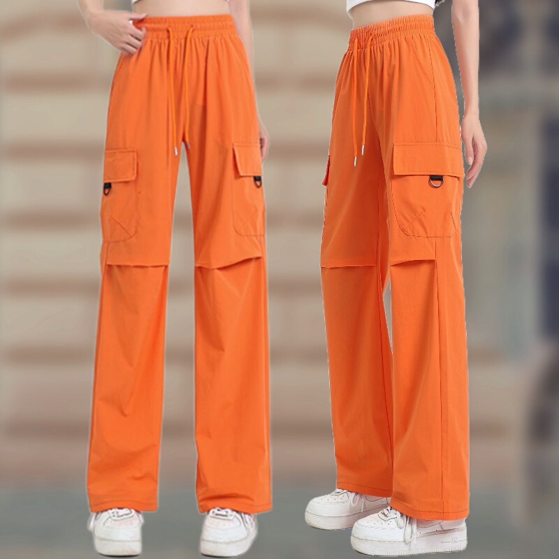 Летние легкие и тонкие модные шелковые быстросохнущие штаны, высокая талия, свободный крой, в американском стиле