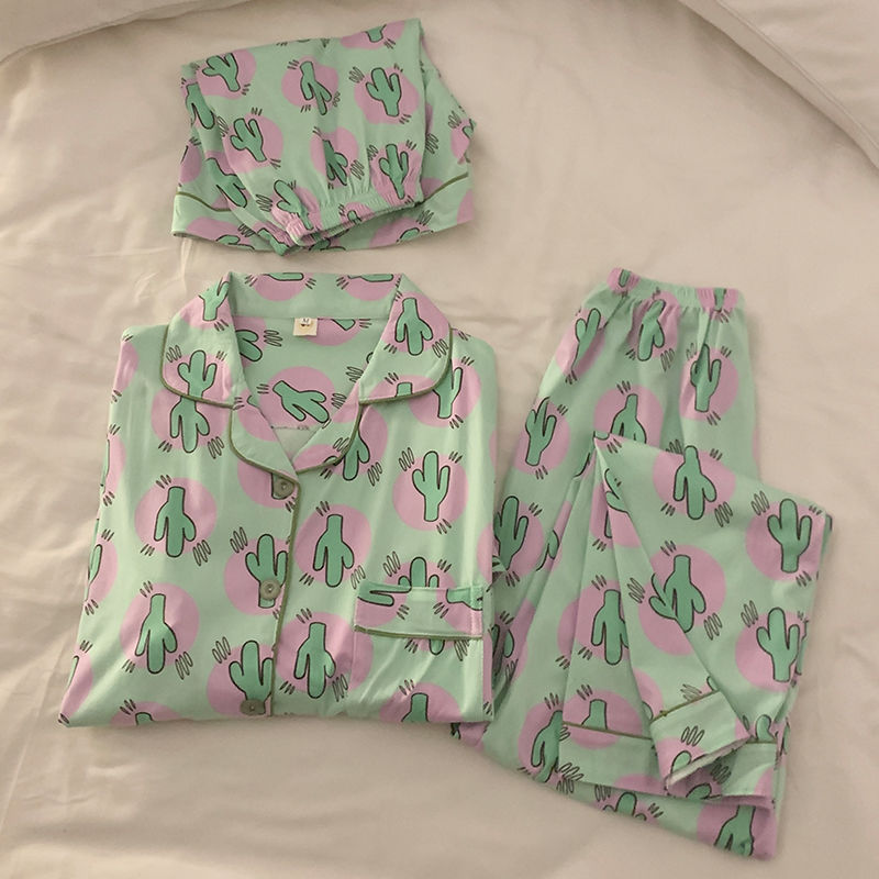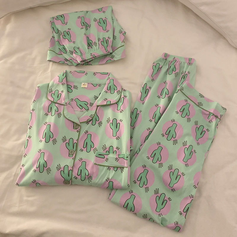 Брендовая летняя пижама, милый тонкий комплект, премиум класс, короткий рукав, 3 предмета