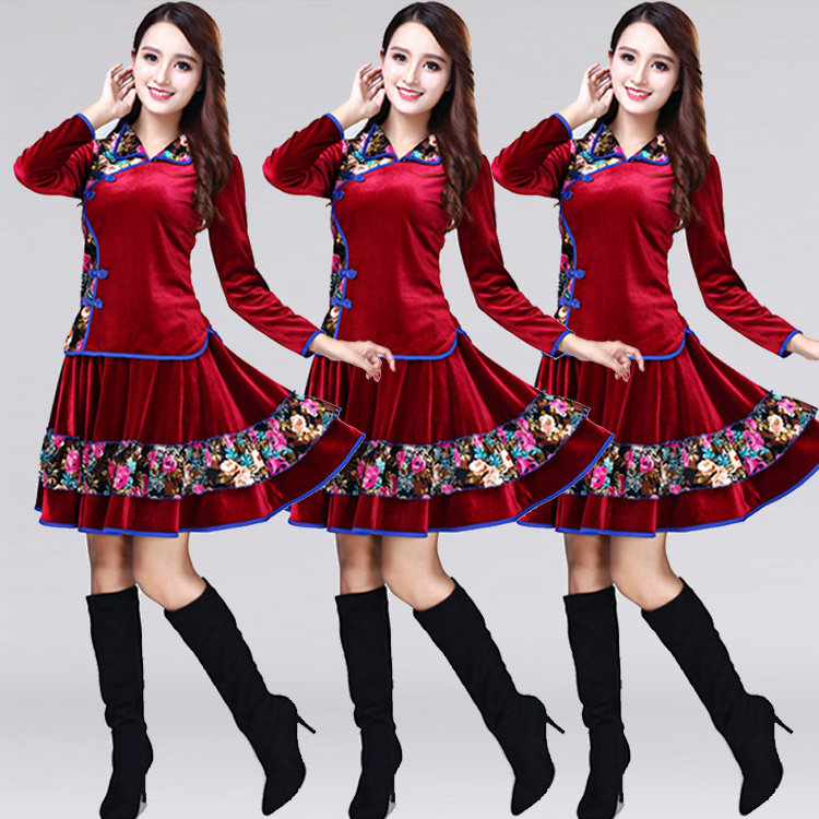 Весенняя юбка, бархатный комплект, танцующий спортивный костюм для пожилых людей, для среднего возраста