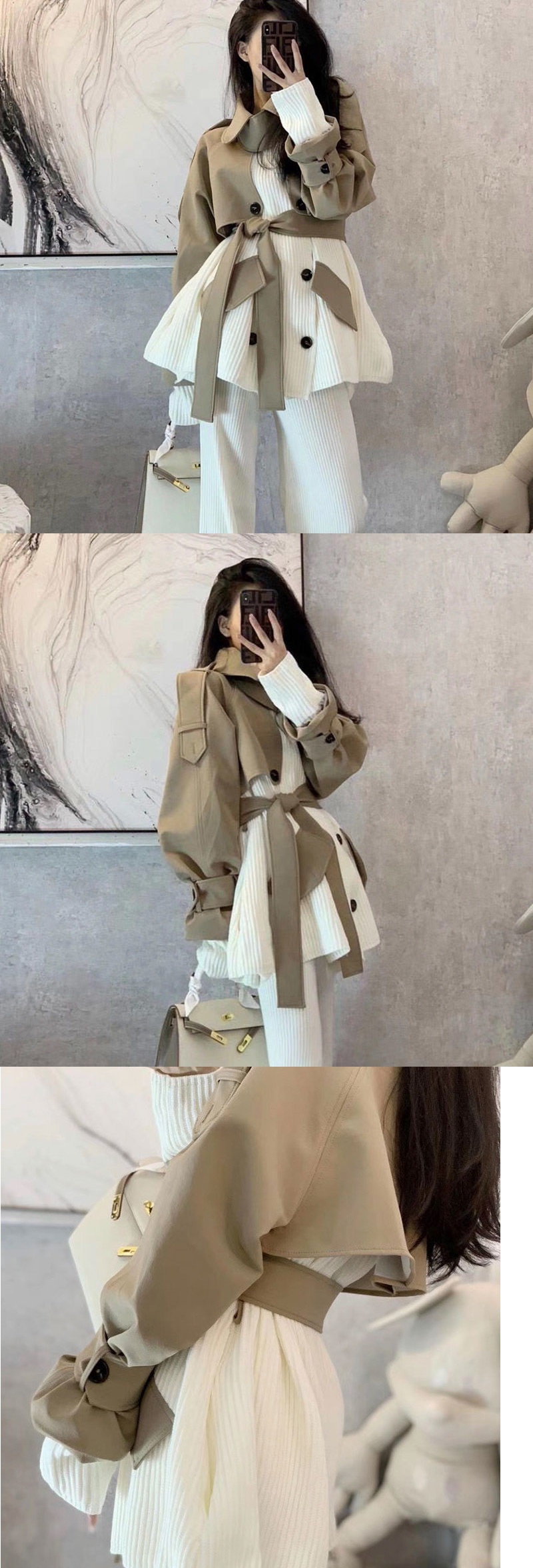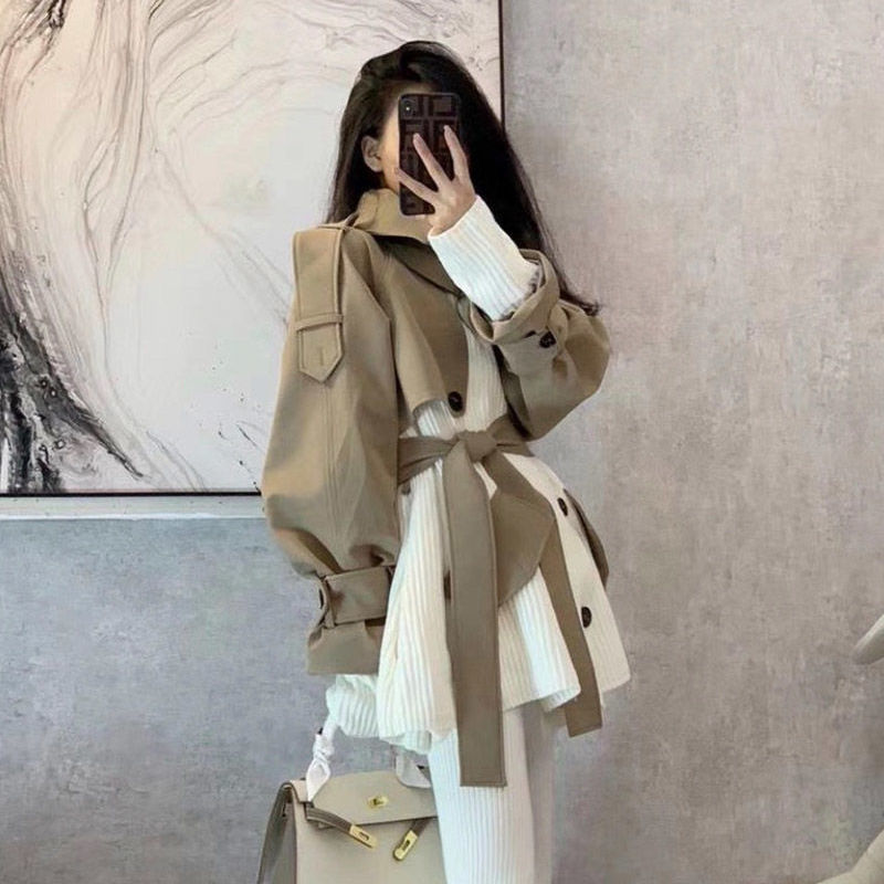 Дизайнерская трикотажная демисезонная элегантная куртка, тренд сезона, коллекция 2021, в корейском стиле, по фигуре, в западном стиле