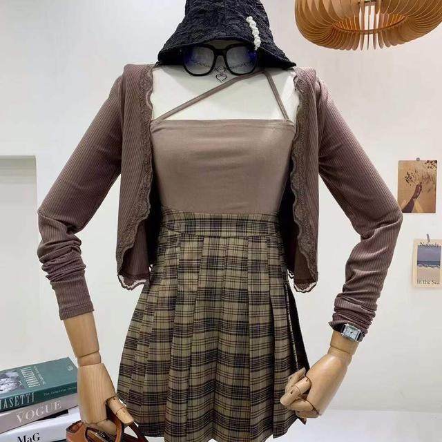 Кардиган, бретели, майка топ, юбка в складку, плиссированная юбка