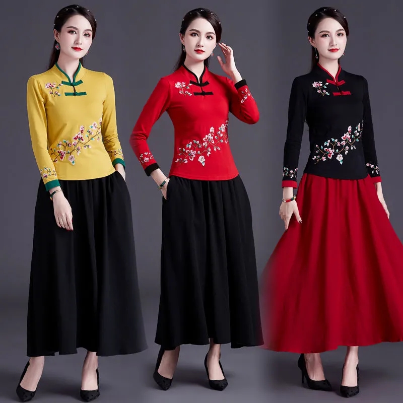 Весенний этнический лонгслив, комплект, тренд сезона, этнический стиль, с вышивкой