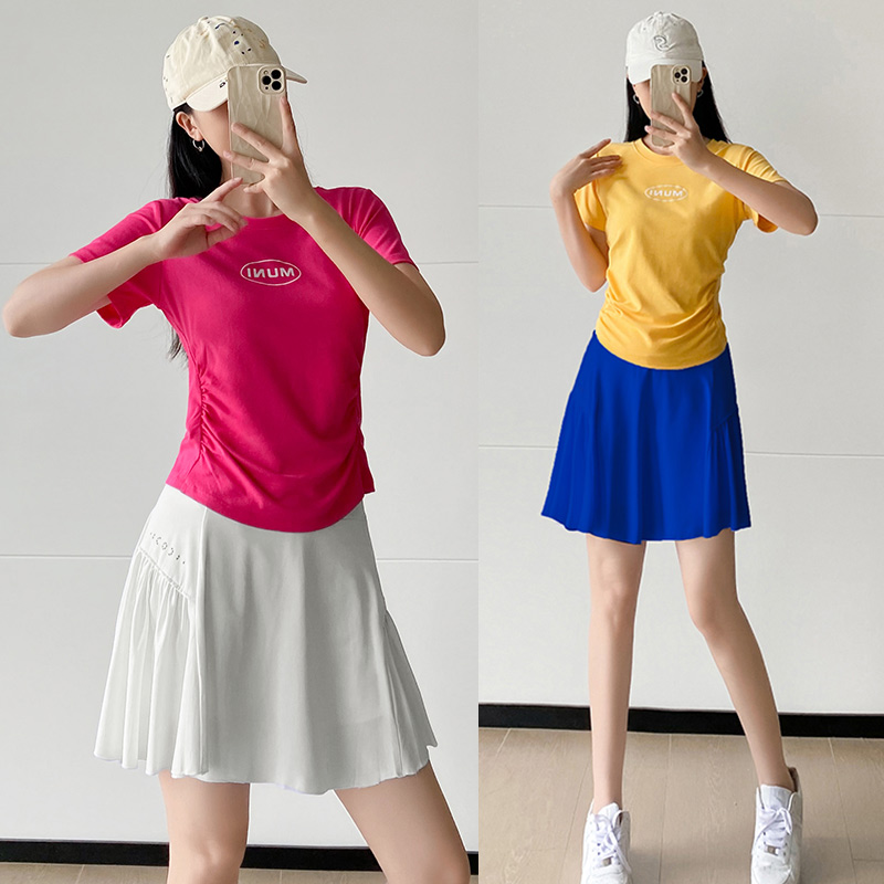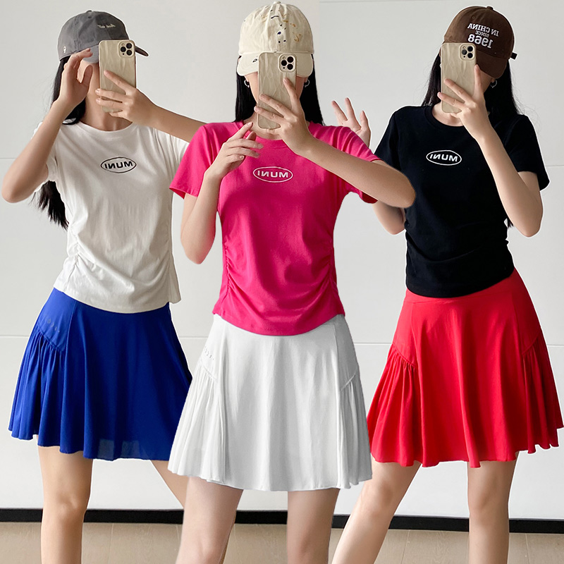 Летний комплект, спортивный костюм для спортзала, спортивная юбка, короткий рукав, впитывает пот и запах