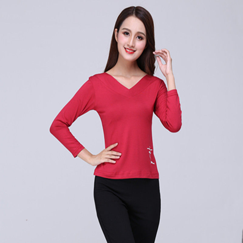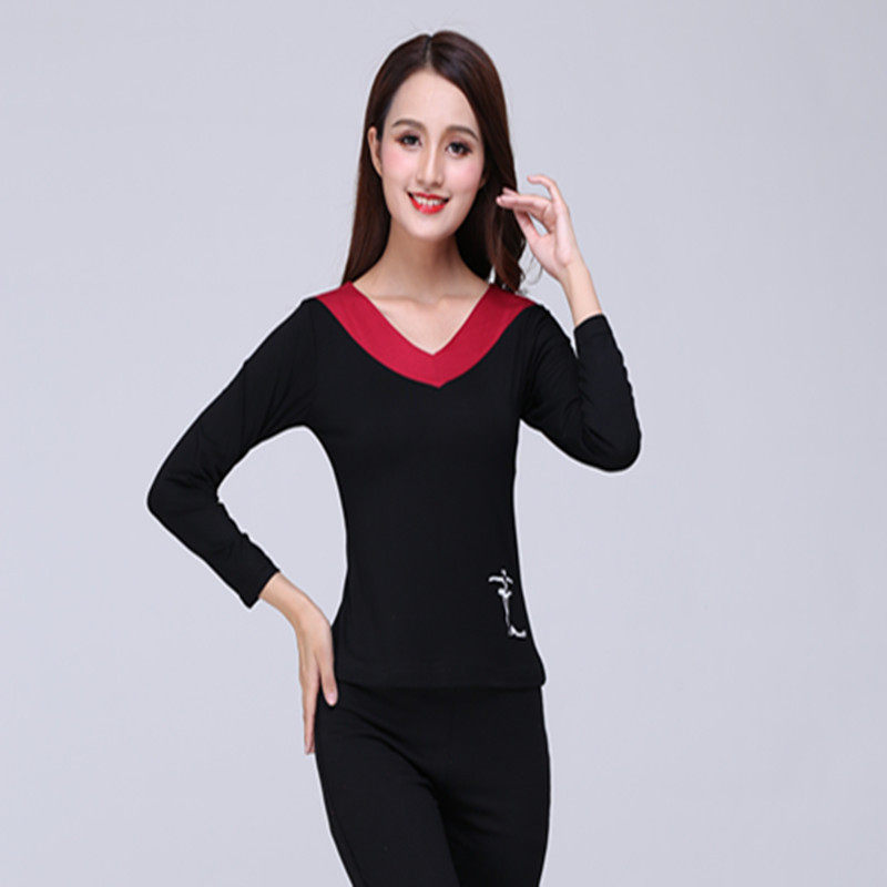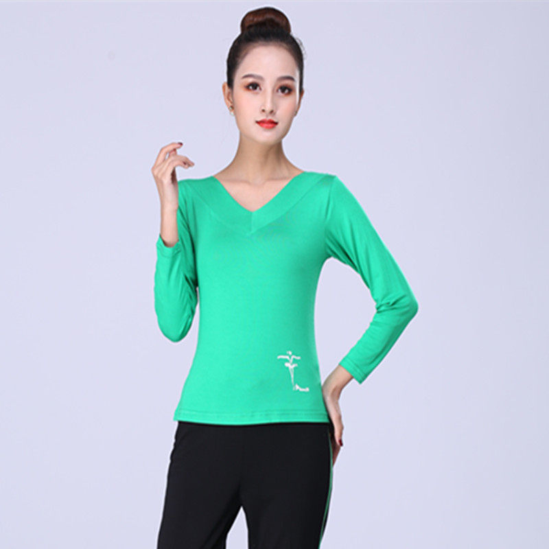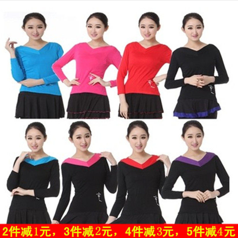 Бесплатная доставка квадратная танцевальная одежда Новая женская латинская дружба Коллективное коллектив Dot Dance Dance Dance -Sleeved V -neck