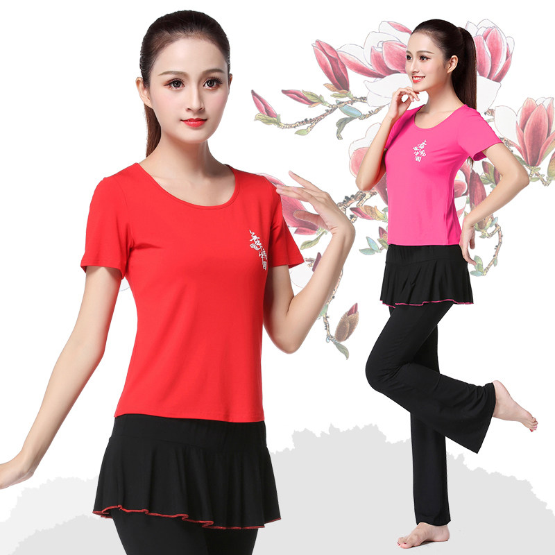 Квадратные танцевальные костюмы для женщин Новый стиль, установленные для среднего возраста и пожилых танцую одежду больших размеров топы для модального танцевальной одежды Ян Ян