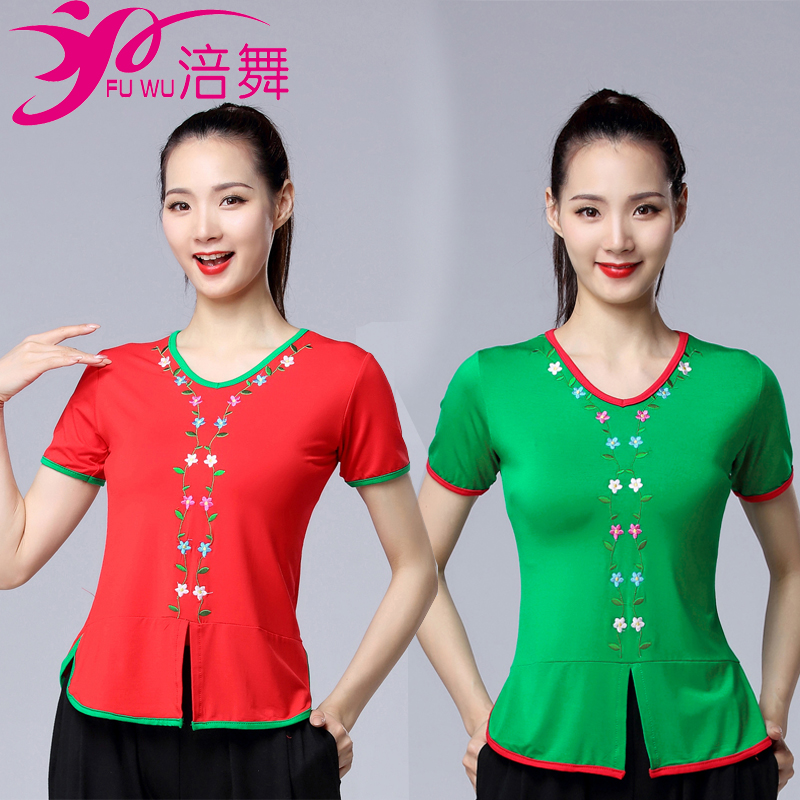 Fuwu 2020 Summer New Dance Olde Modal вышитая V-образная мода среднего возраста и пожилые квадратные танце
