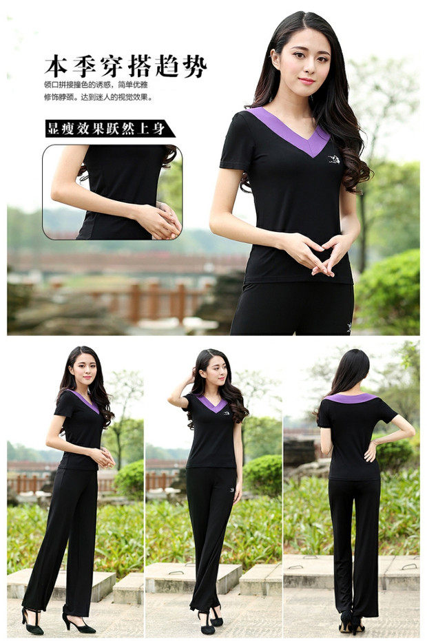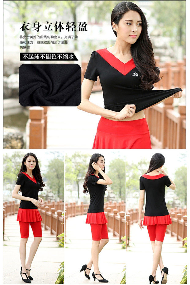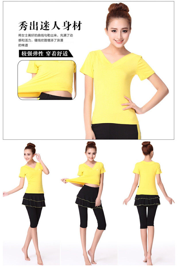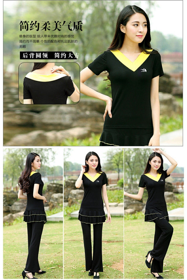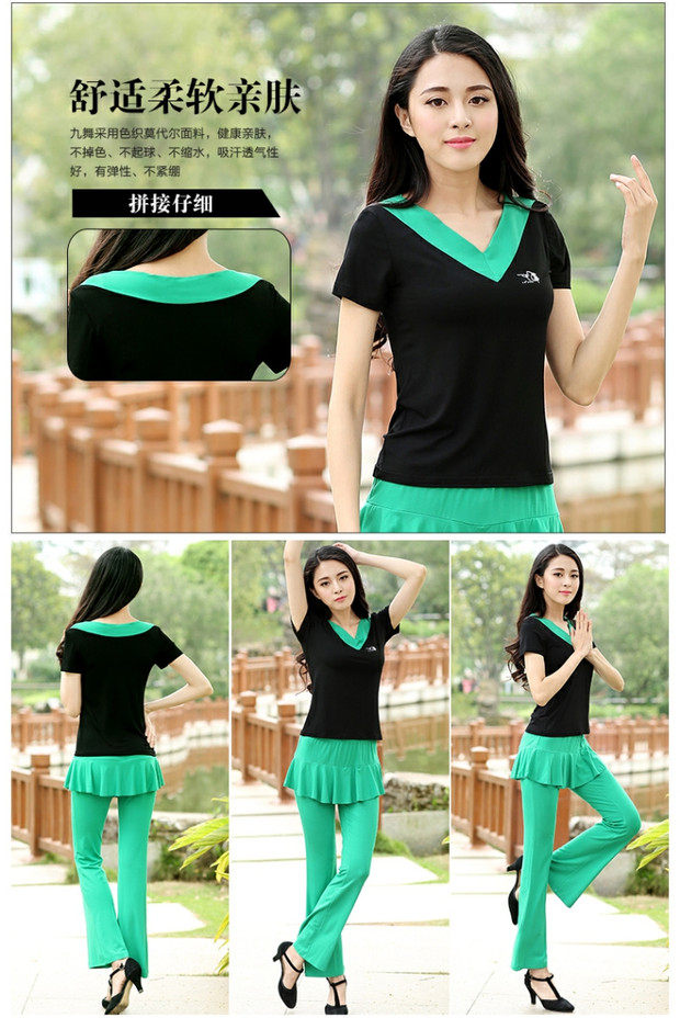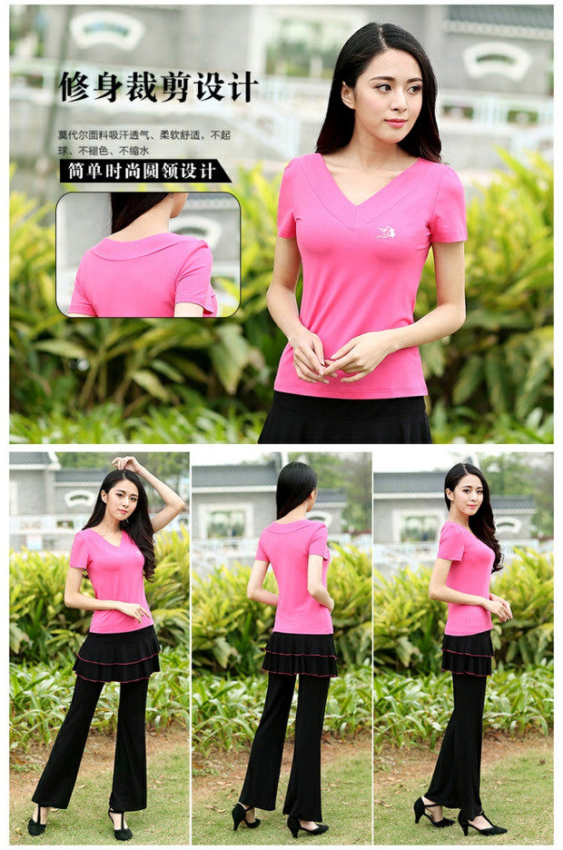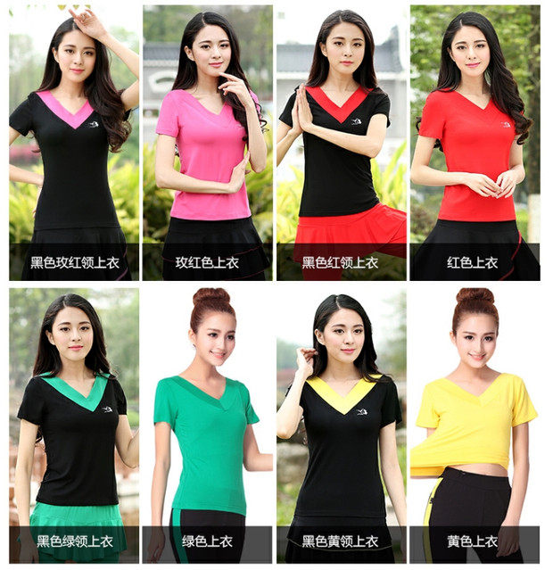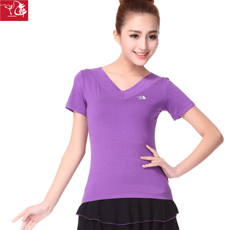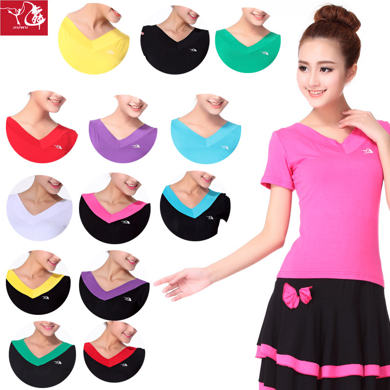 Джиуву -квадратная танцевальная костюм Топ лето с коротким рукавом модальная танцевальная одежда Фитнеса Спортивная танцевальная одежда Женская топ