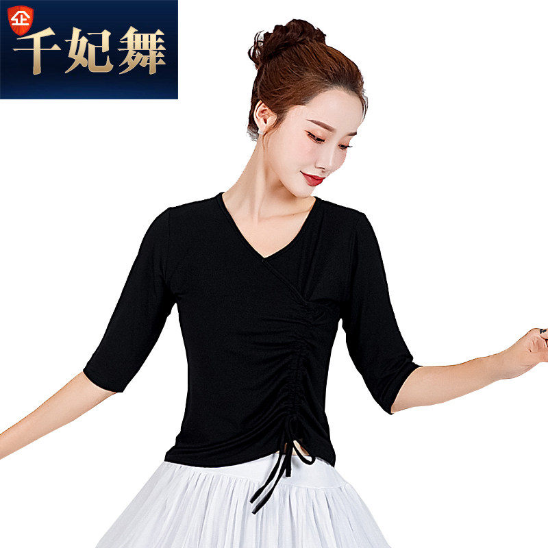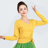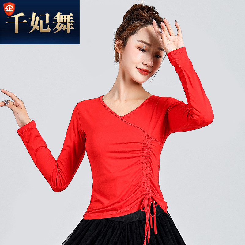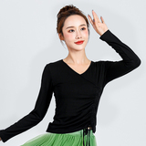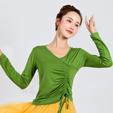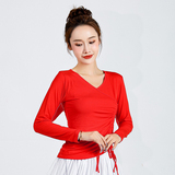 Осенний танцующий классический лонгслив, облегающий крой, V-образный вырез
