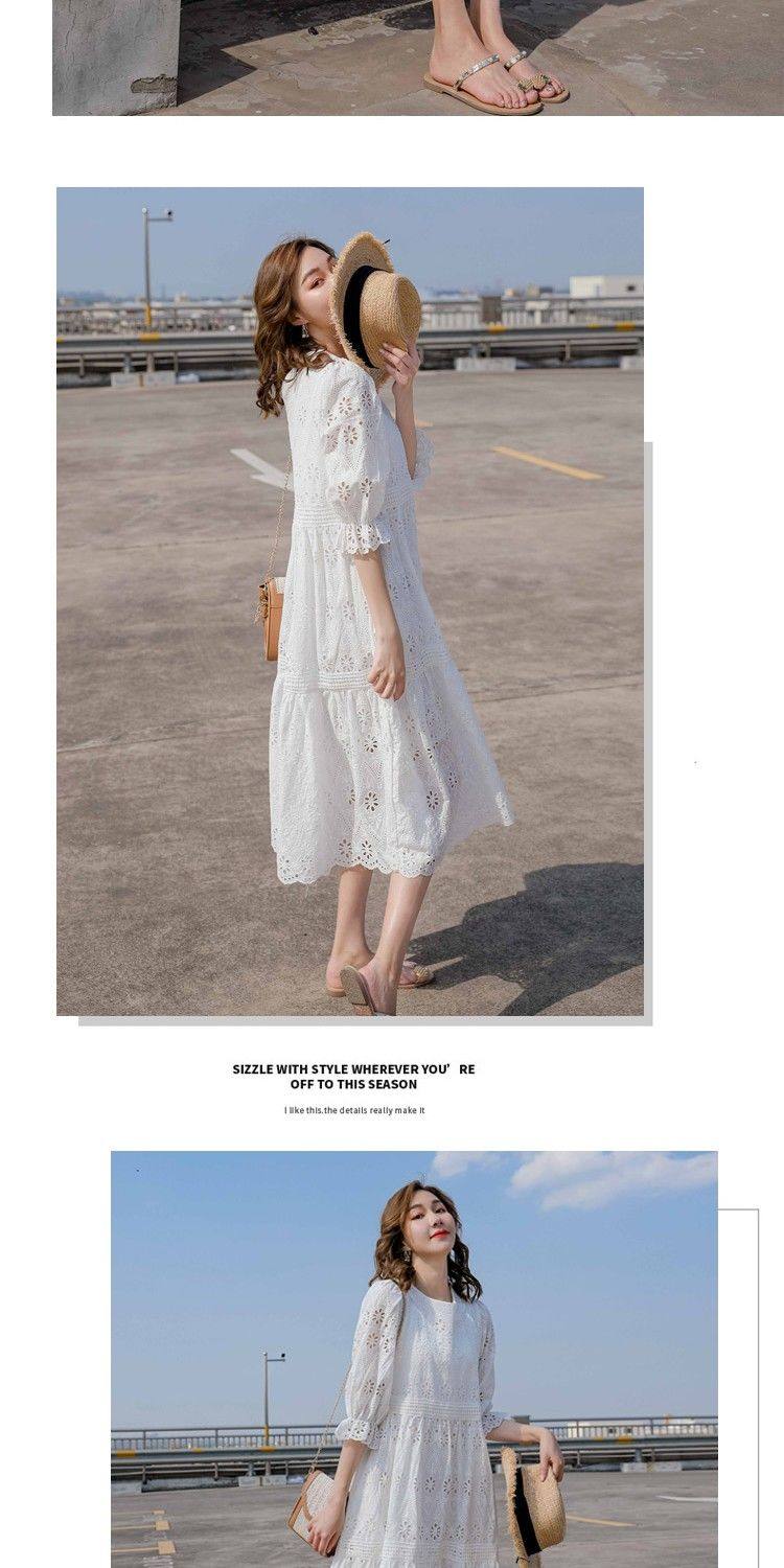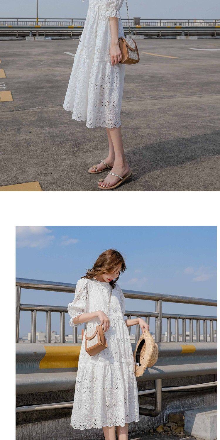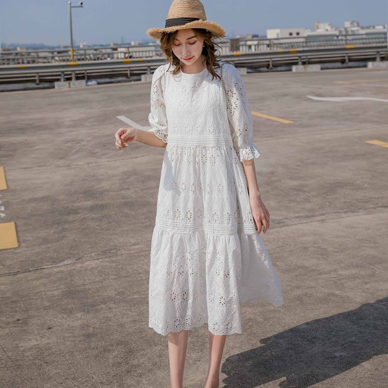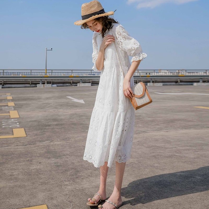 Летняя белая кружевная юбка, длинное платье, коллекция 2021, французский стиль, свободный крой, средней длины