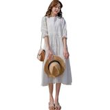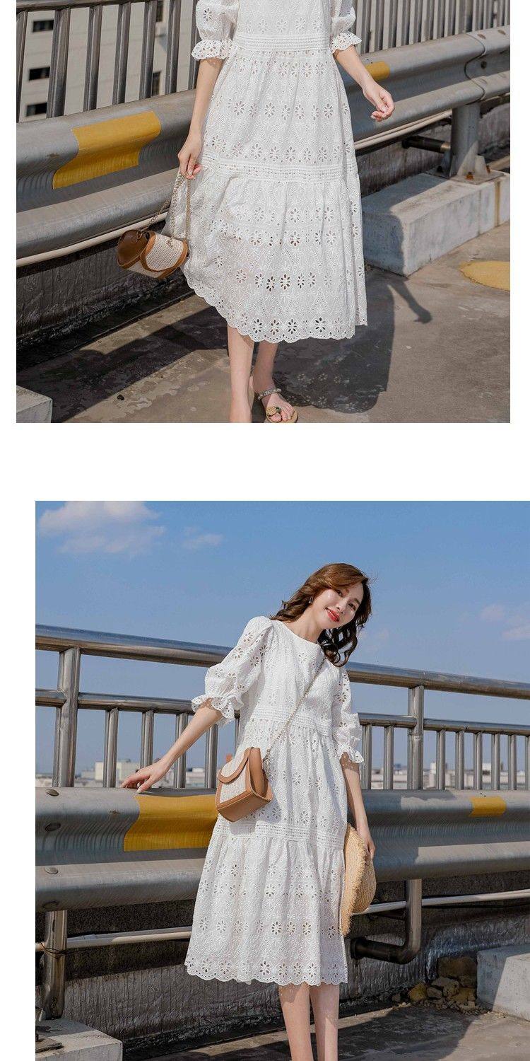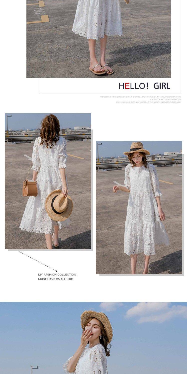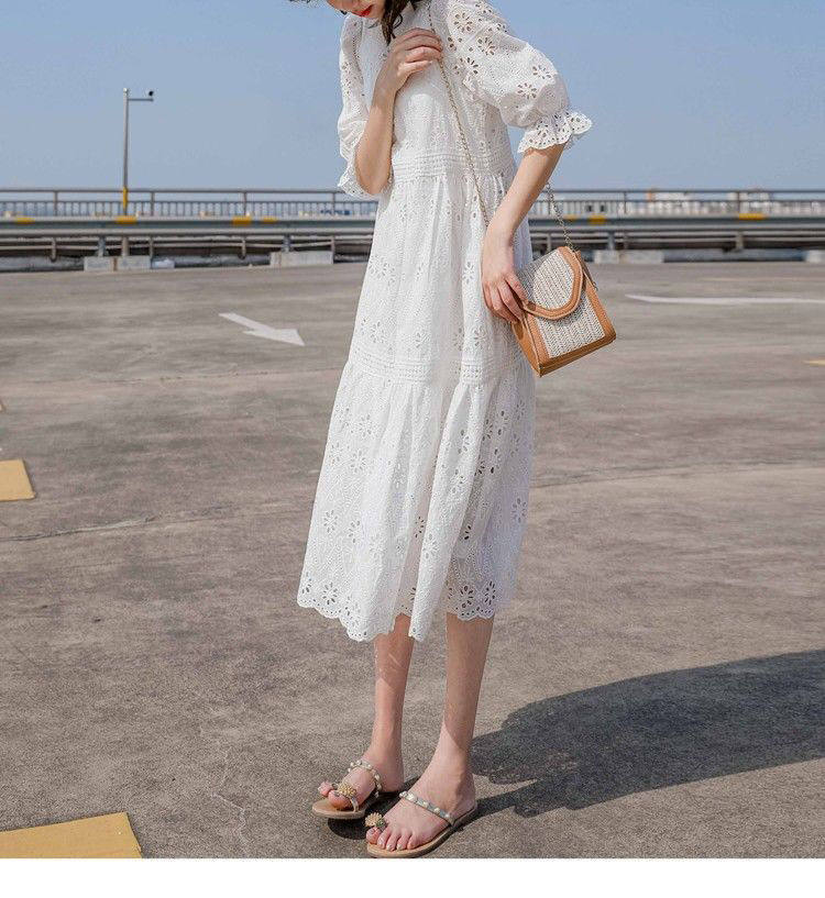 Летняя белая кружевная юбка, длинное платье, коллекция 2021, французский стиль, свободный крой, средней длины