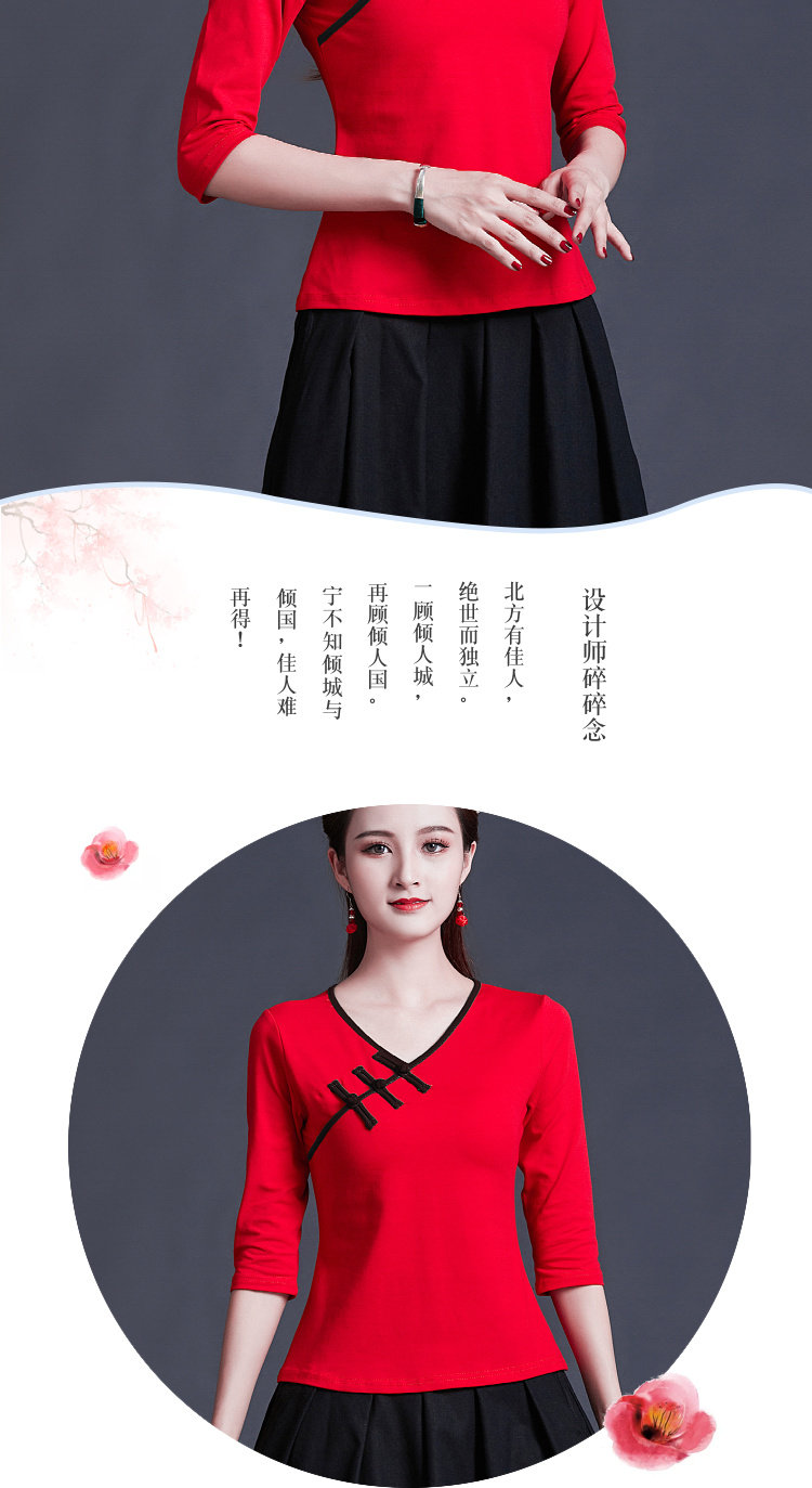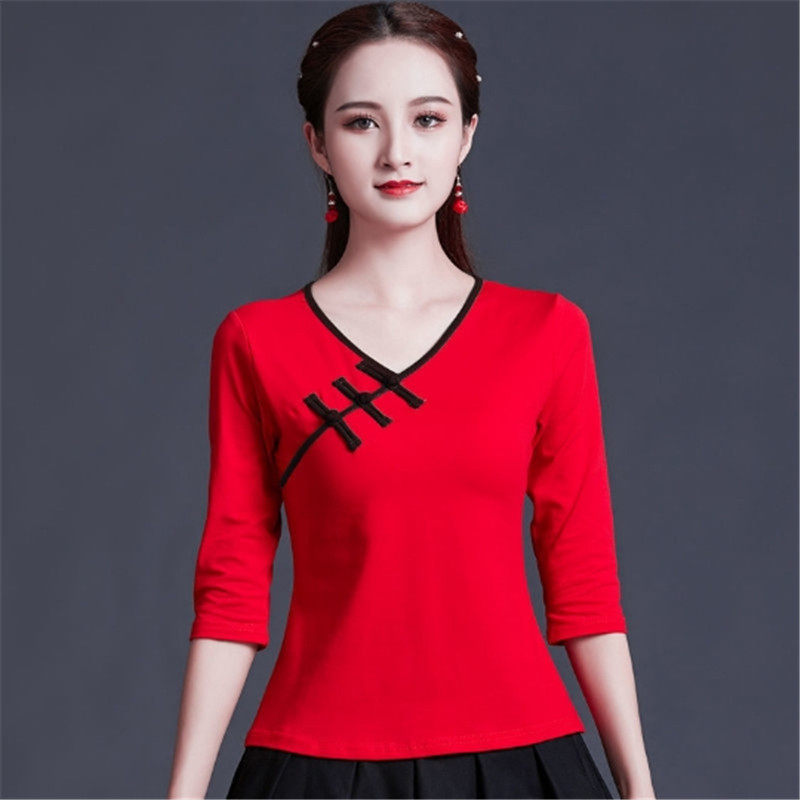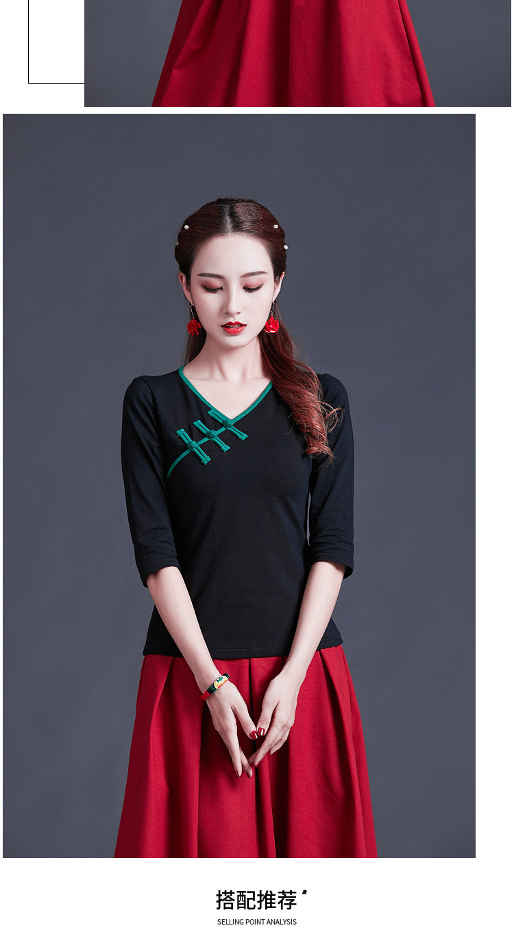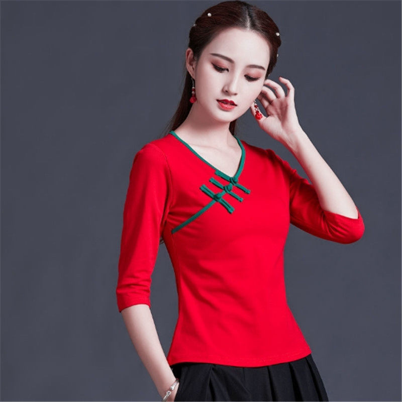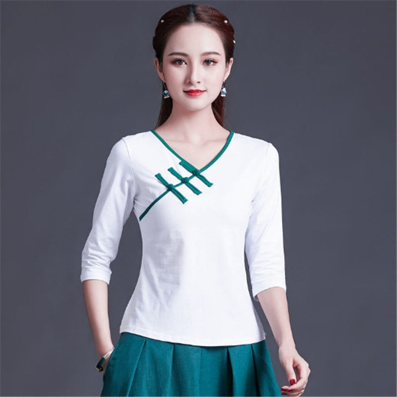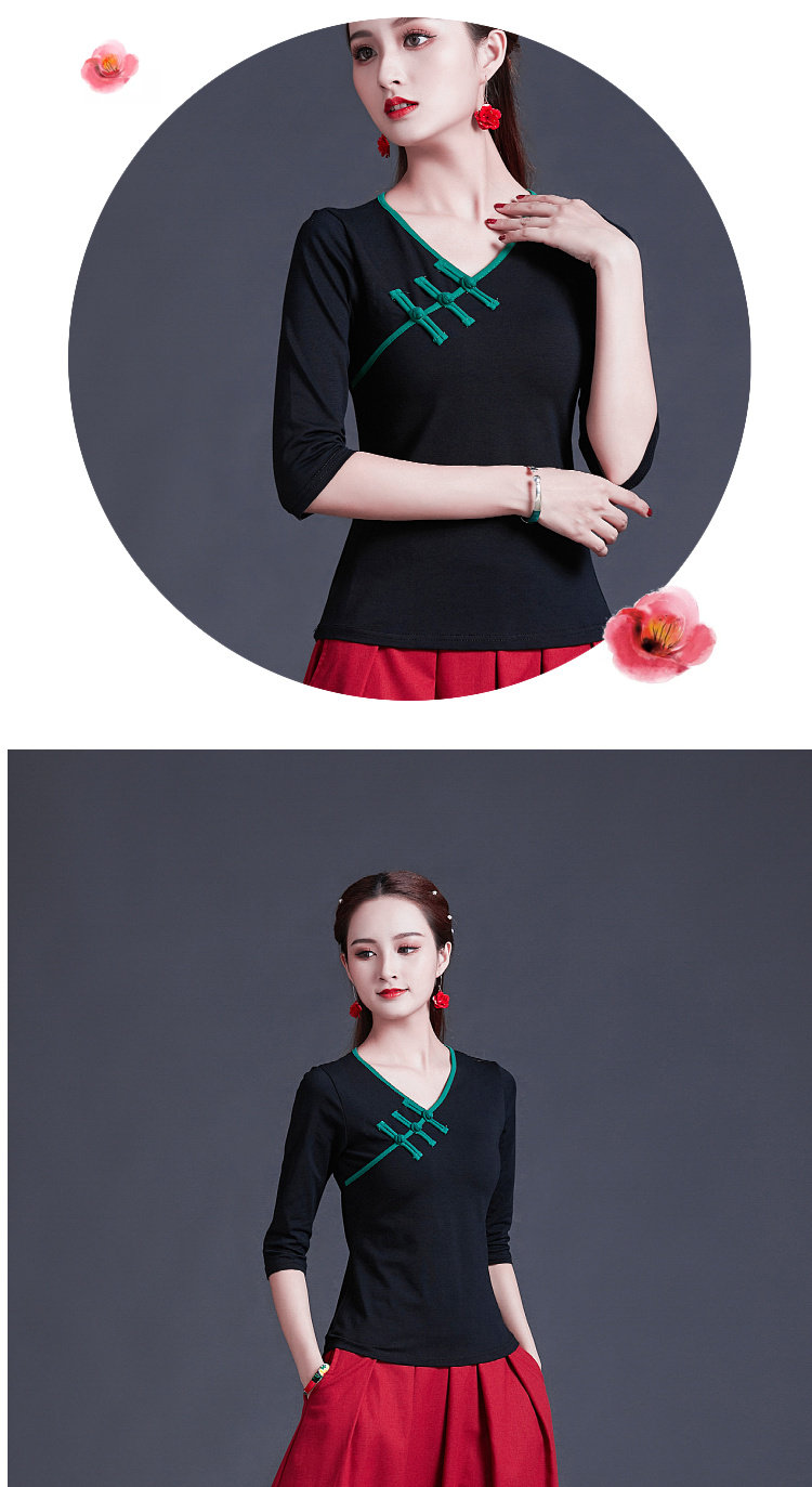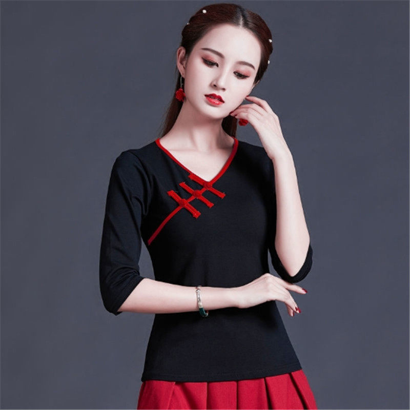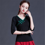 Этническая ретро летняя модная футболка, этнический стиль, V-образный вырез, облегающий крой