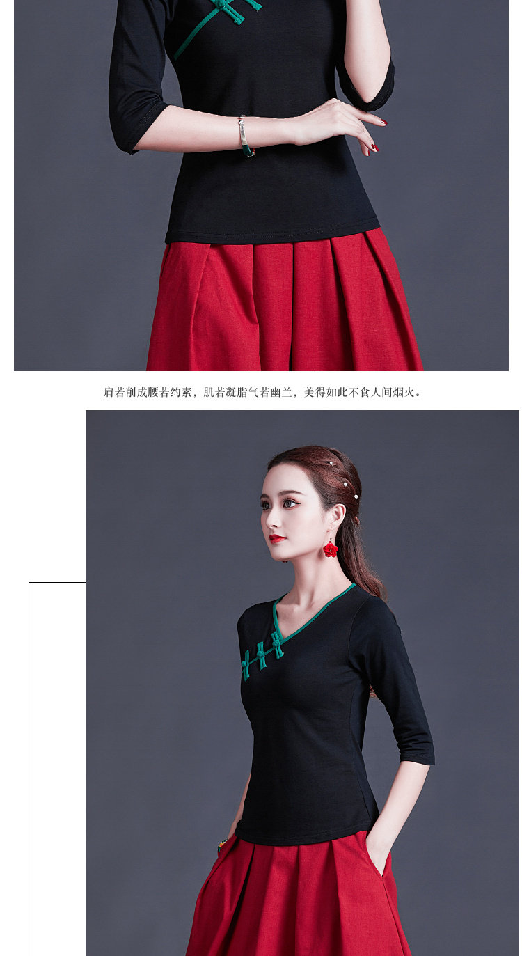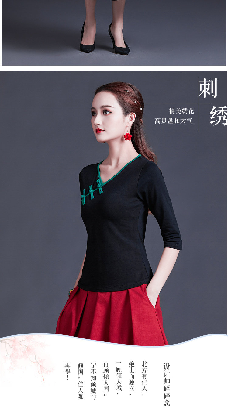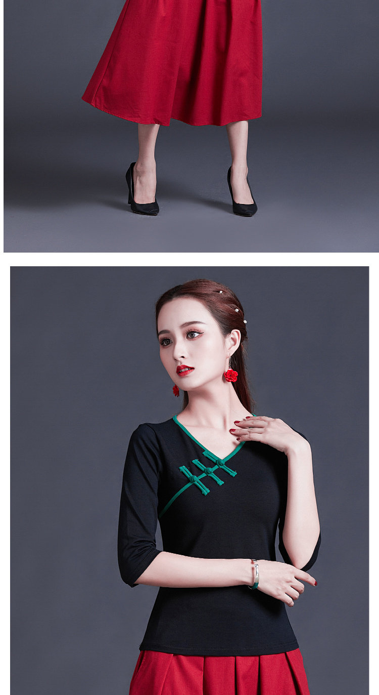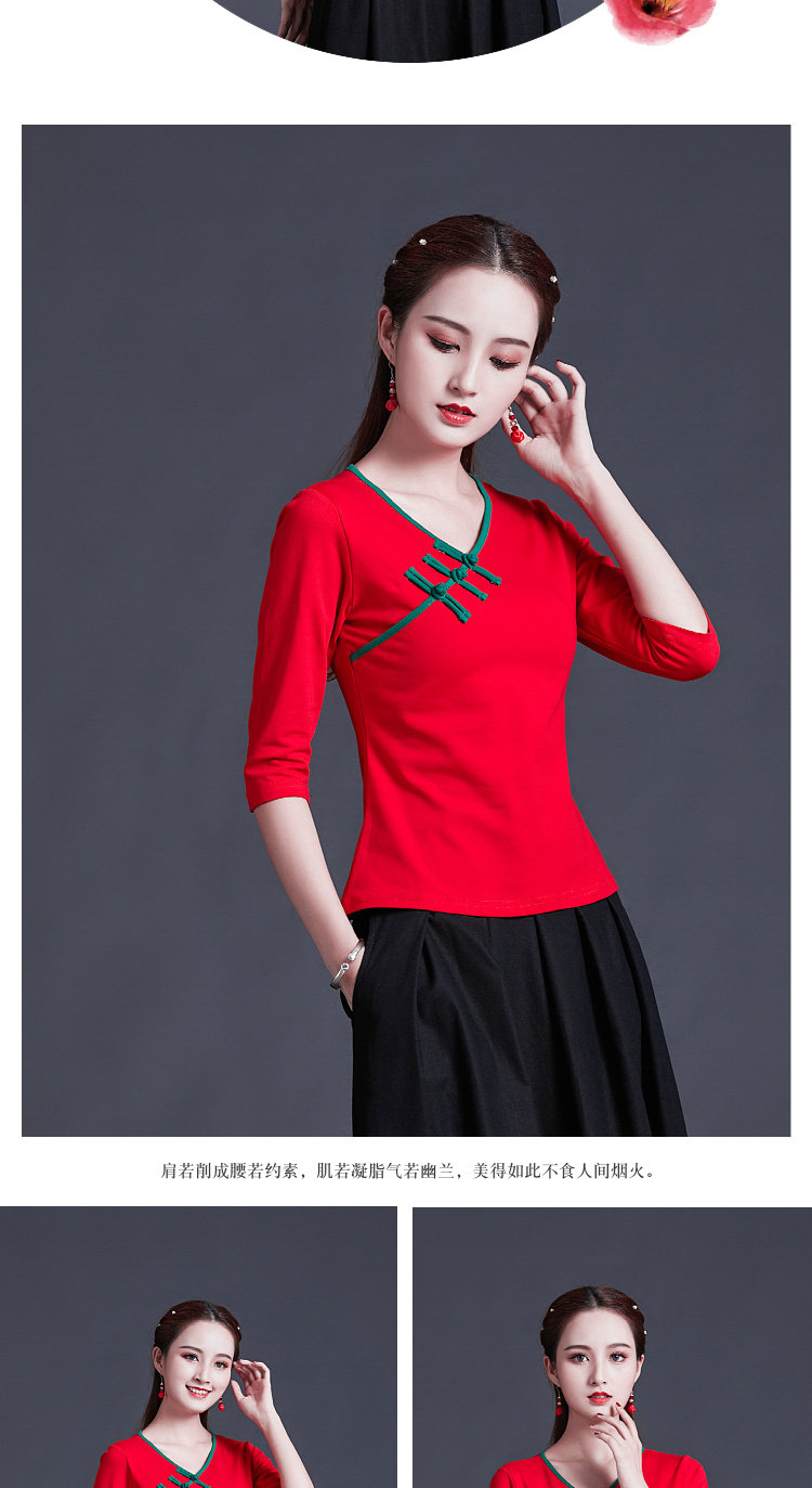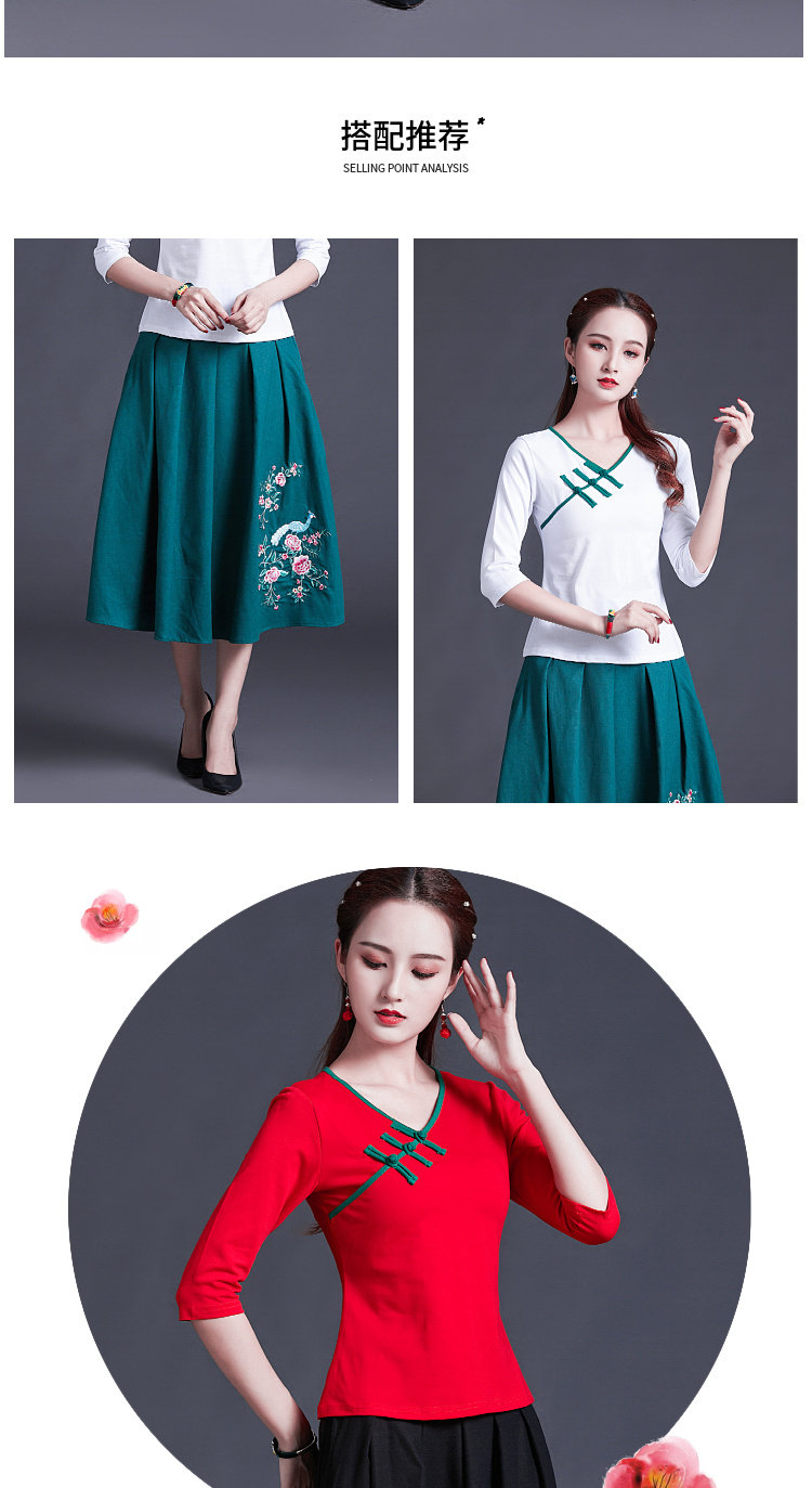 Этническая ретро летняя модная футболка, этнический стиль, V-образный вырез, облегающий крой