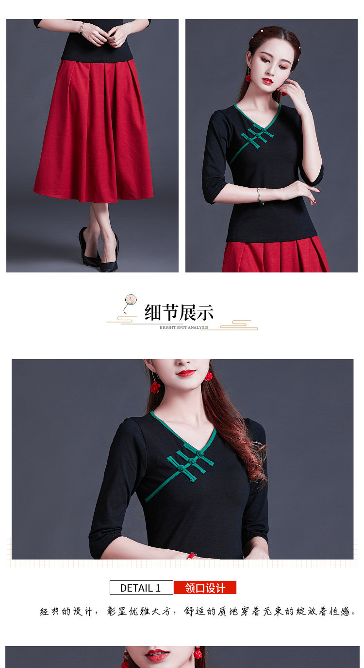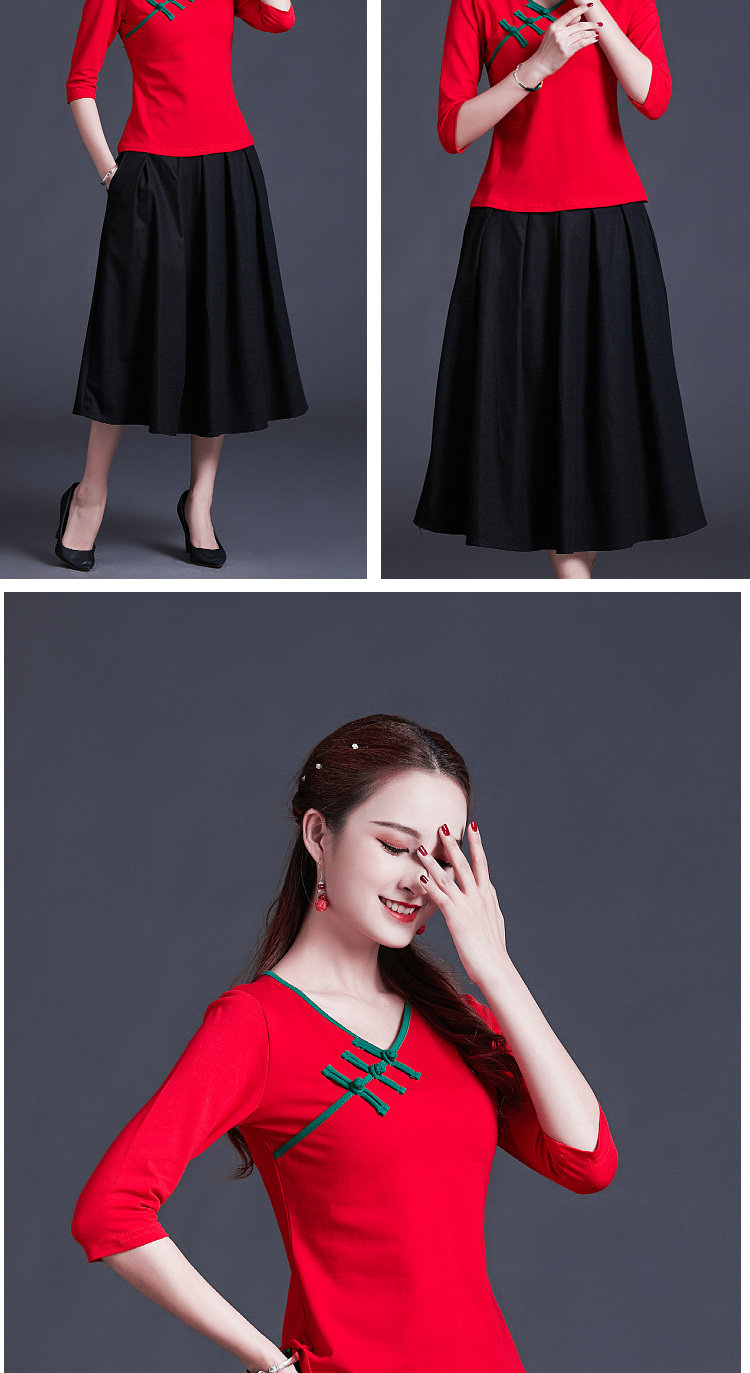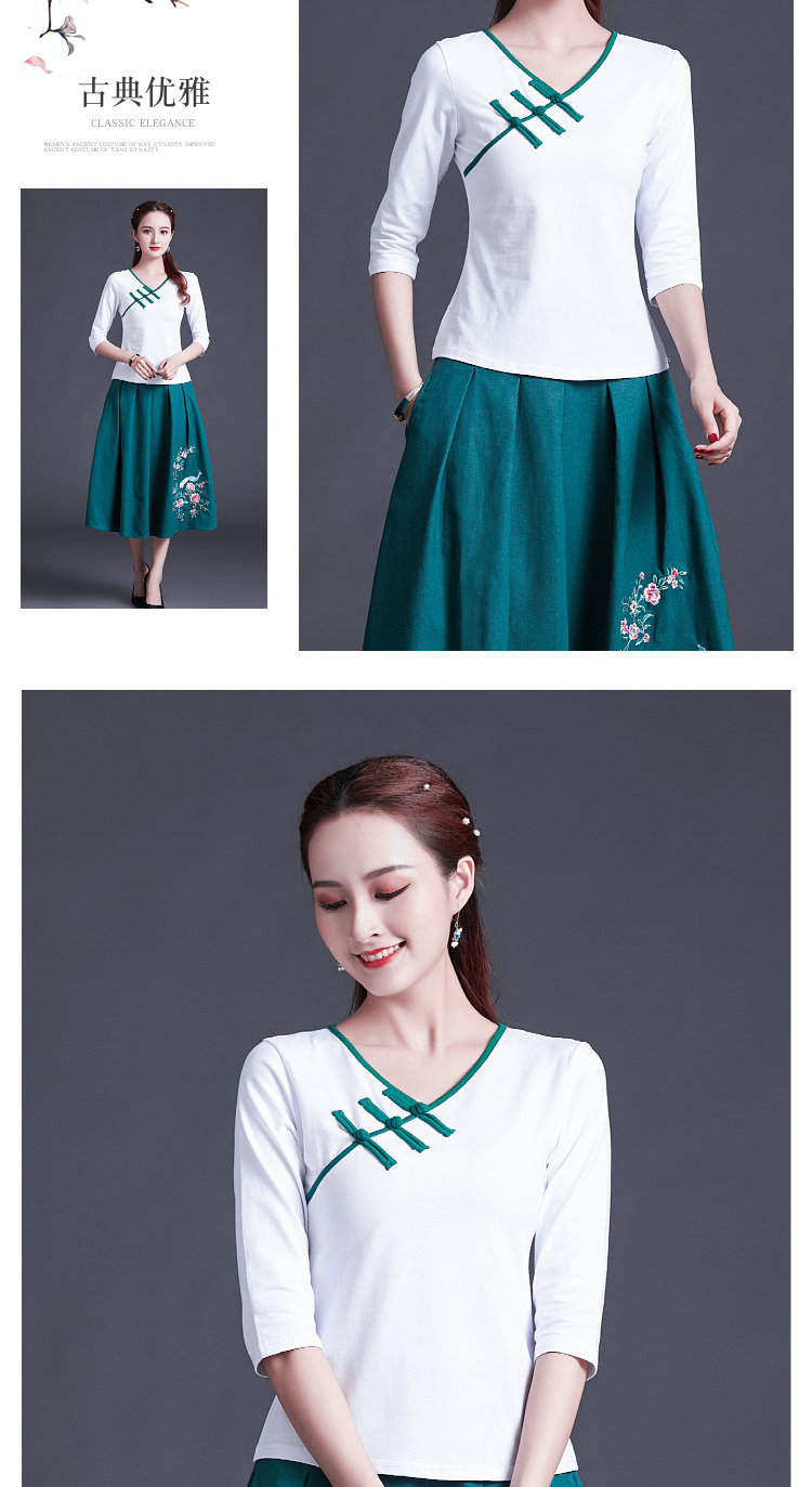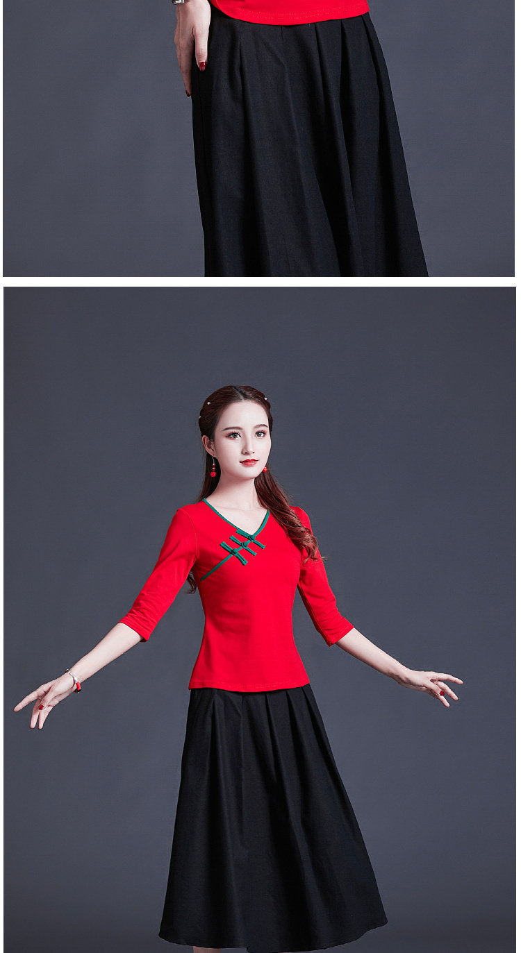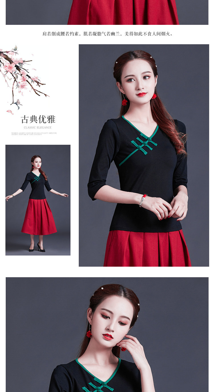 Этническая ретро летняя модная футболка, этнический стиль, V-образный вырез, облегающий крой