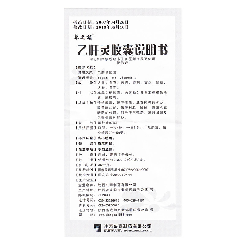 草之楼 Капсулы Yiganling 0,5 г * 36 капсул в коробке противовоспалительные, очищающие от жара, детоксикационные, успокаивающие печень и укрепляющие селезенку, вирусный гепатит B, лекарство от гепатита B, антивирусное, снижающее трансаминазу
