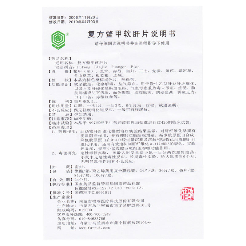 回乐 Соединение 肝 肝 复 复 复 0,5 г*36 Таблетки/коробка хронический гепатит В гепатит В фиброз печени Цирроз