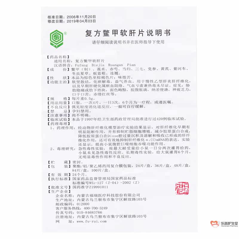 回乐 Соединение 肝 肝 复 复 复 0,5 г*36 Таблетки/Коробка мягкого и застойного застоя, удаление и яд для хронического гепатита В Ранний цирроз печени