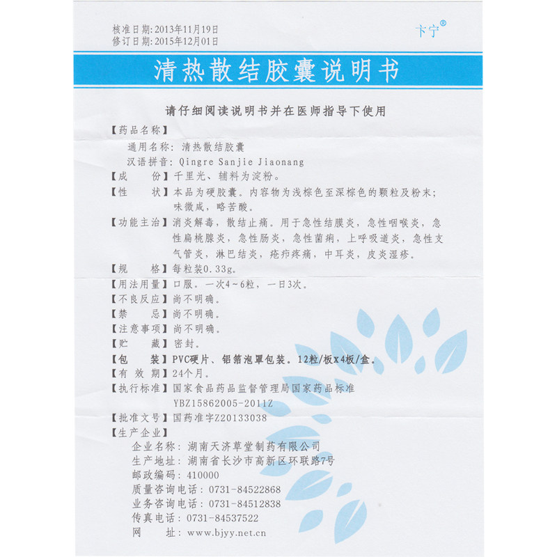 卞宁 Прозрачная тепло дисперсионная капсула 0,33 г*12 зерен*4 Плата/коробка против антиоблотационной детоксикации Дисперсия и обезболивающее обезболивание используется для острого конъюнктивита Острый фарингит Острый миндалина воспаление Верхнее дыхание при экза
