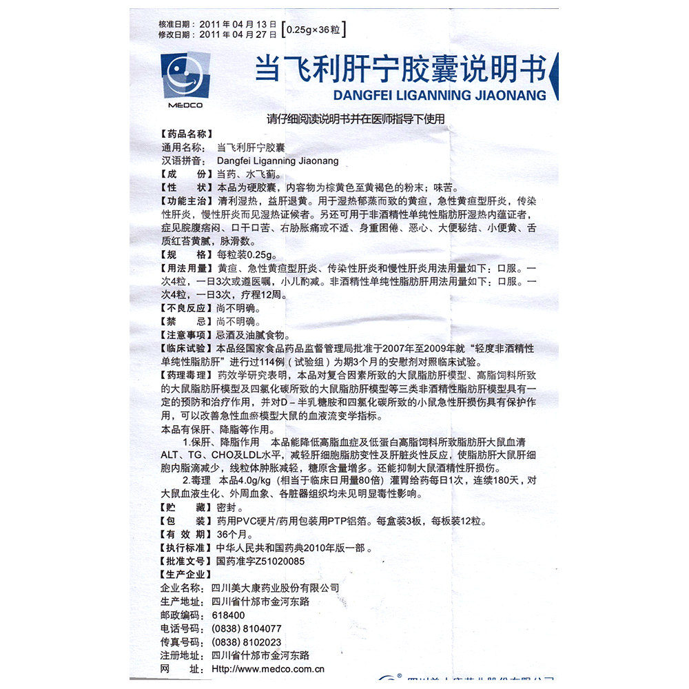 Medco Dangfei печени Ning Capsule 0,25 г*36 Капсулы/коробка с желтой хронической медициной гепатита