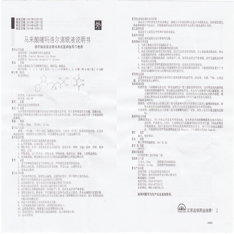远恒 Малайзийская кислая 噻 噻 马 马 5 мл*12,5 мг/коробка вторичная глаукома высокое заболевание глаз