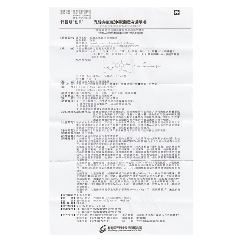 舒视明 Zo kai молочная кислота левофлоксацин, плющий глаз жидкость 5 мл: 15 мг*1 поддерживающая/коробчатая бактериальная конъюнктивит слезоточи