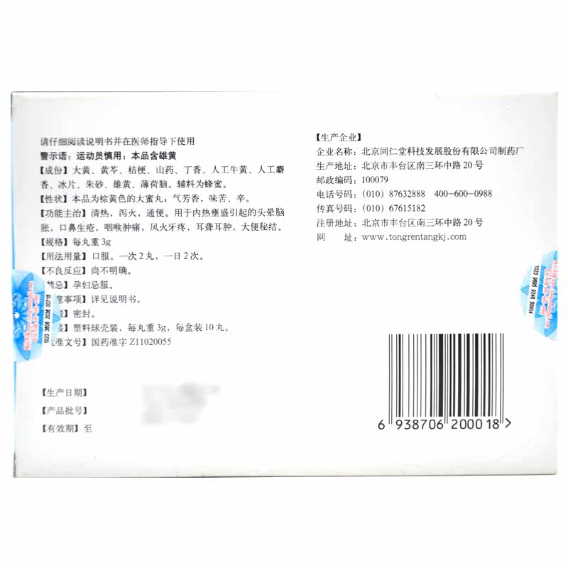 同仁堂 Jiuzhi qingxin pill 3g*10 таблетки/коробка/коробка