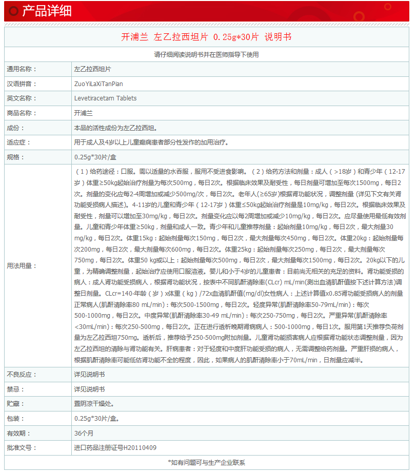 开浦兰 Zuo yira sittan таблетки 0,25 г*30 таблетки/коробка