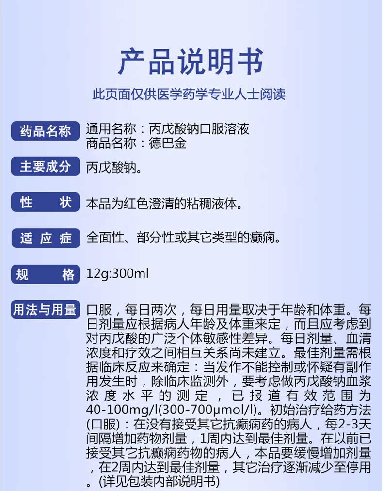 德巴金 Соду из золота пателит пероральный раствор натрия 300 мл: 12G*1 бутылка/ящик эпилепсию пероральное раствор ⑤