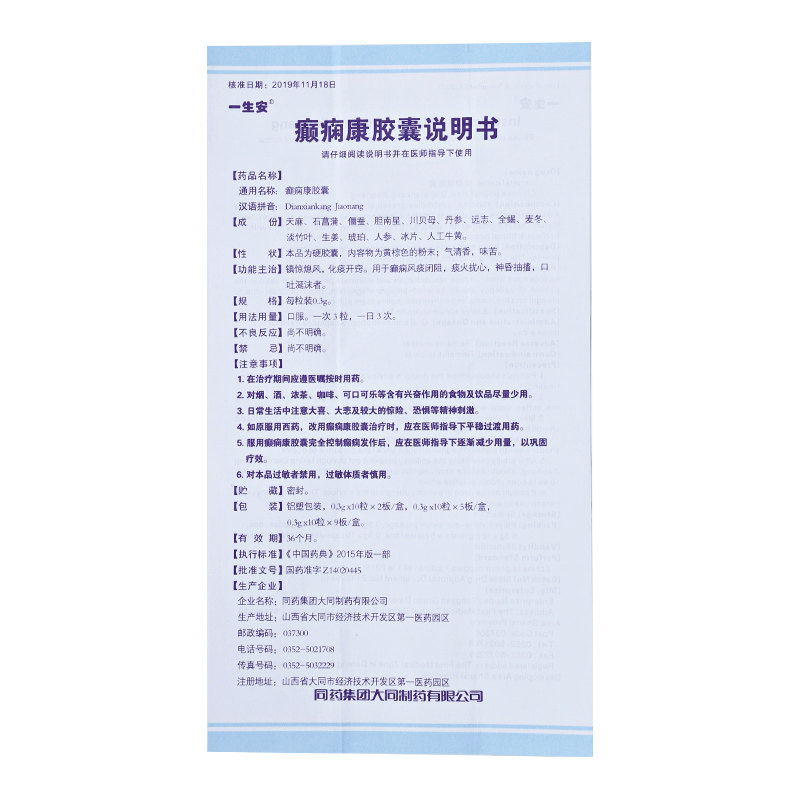 Пожизненная капсула эпилепсии Гуансенга 0,3 г*60 капсул/коробочный город шокирует ветреную эпилепсию и судороги, колю, слюна ① ⑤ ⑤ ⑤ ⑤