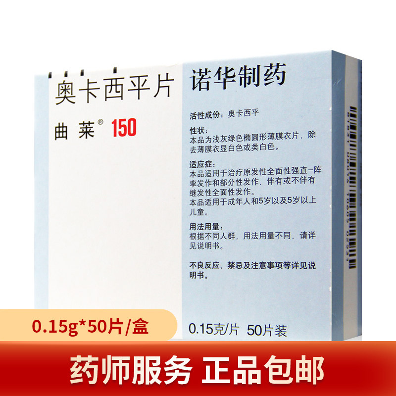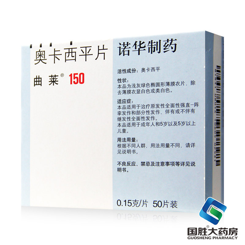 曲莱 Qu Lai/Trileptal Ping Ping Film 0.15G*50 Таблетки/ящик взрослые и дети старше 5 лет, первичные комплексные прозвища-клонические судороги и частичные судороги сопровождаются или не сопровождаются комплексными атаками