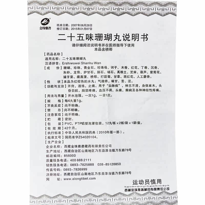 金珠雅砻 Двадцать пять таблеток Вайшу 0,25 г*24 таблетки/коробка для открытия отверстий и снятия боли при белом пульсовом заболевании, неясном сознании, онемение, головокружение, боль в груди, кровяное давление, нерегулярная головная боль, эпилепсия, различные неврологические головные боли