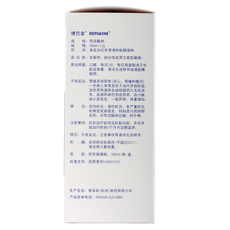 德巴金 Раствор перорального раствора натрия 300 мл: 12G*1 бутылка/коробка Duba золотой раствор Daba Golden Propyate Раствор Комплексная эпилепсия Частичная эпилепсия другие виды эпилепсии препарата