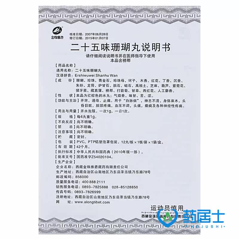 Всего 18 юаней/коробки] Джинцху Yazi двадцати -пятна коралловых таблеток 0,25 г*12 таблетки/ящик для эпилепсии. Расстройства онемения тела Грифру