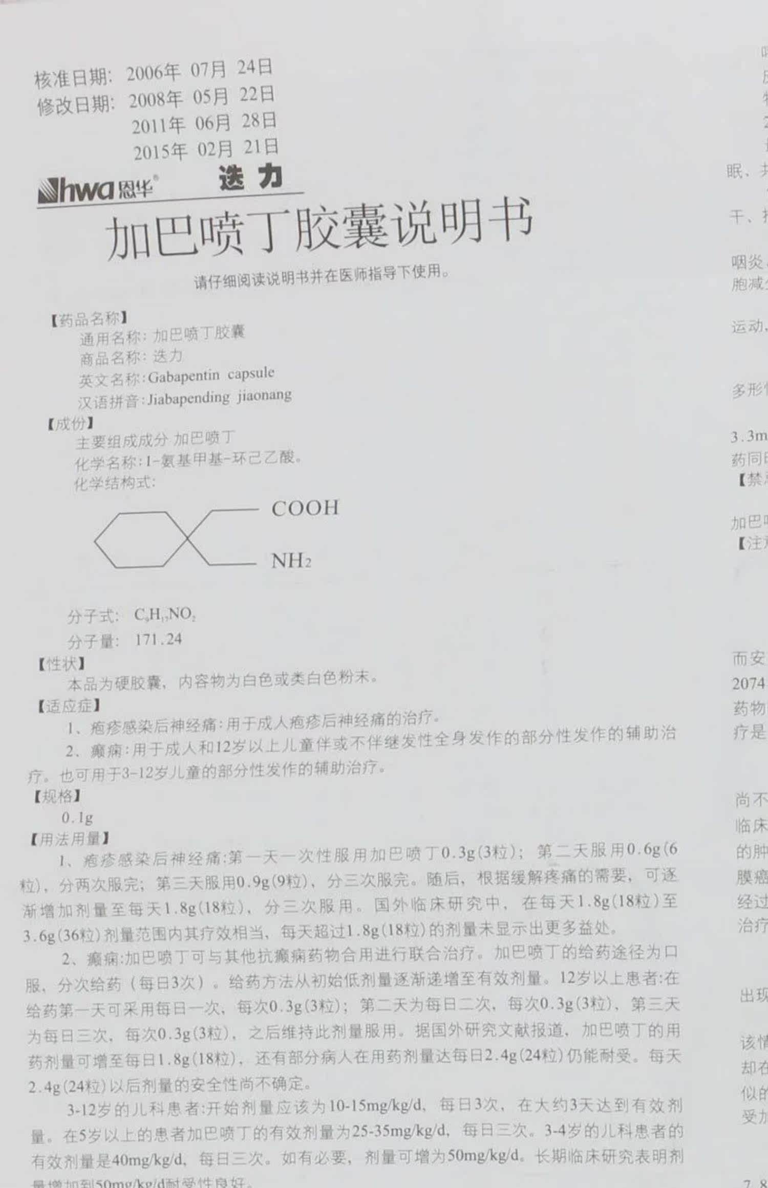 HWA/恩华 Капсулы распыления Dieligaba 300 мг*24 капсулы/коробка