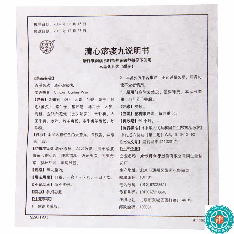 [Бесплатная доставка] Tongrentang Qingxin Rolling Pills 3G*10 таблетки/коробка Цинсин продемонстрировали мокроту и разрушитель бедный бедный бедный мокроту и огонь.