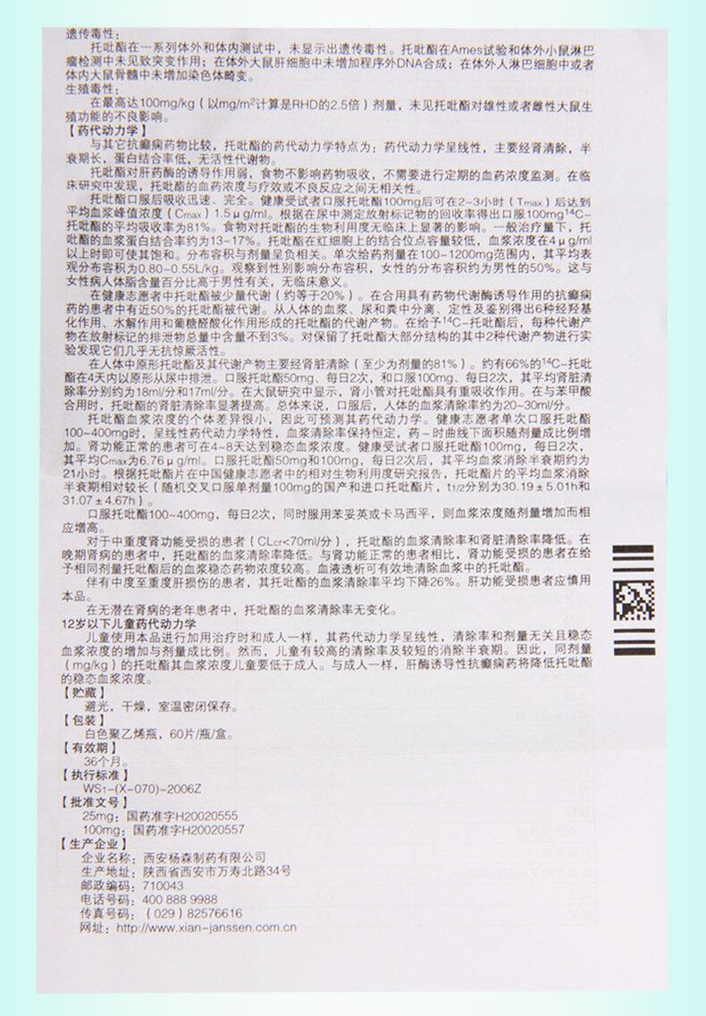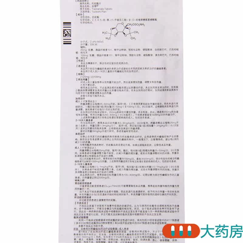 妥泰 ТАБЛИЦА ТОПЕРИДИРАМИН 25 мг*60 таблетки/коробка для эпилепсии, вызванная закрытием ветра и мокроты