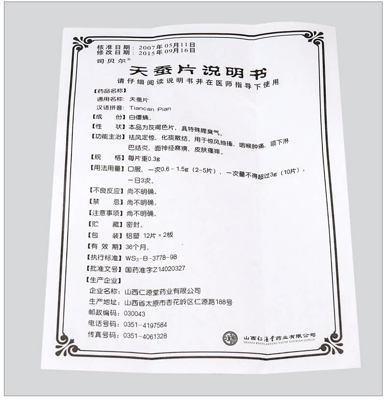 司贝尔 Таблетки шелковика 0,3 г*24 таблетки/коробка подлинное премиование ветра, лечение рассечения мокроты, лечение ветра, судороги, горло, обезболивающее лимфа