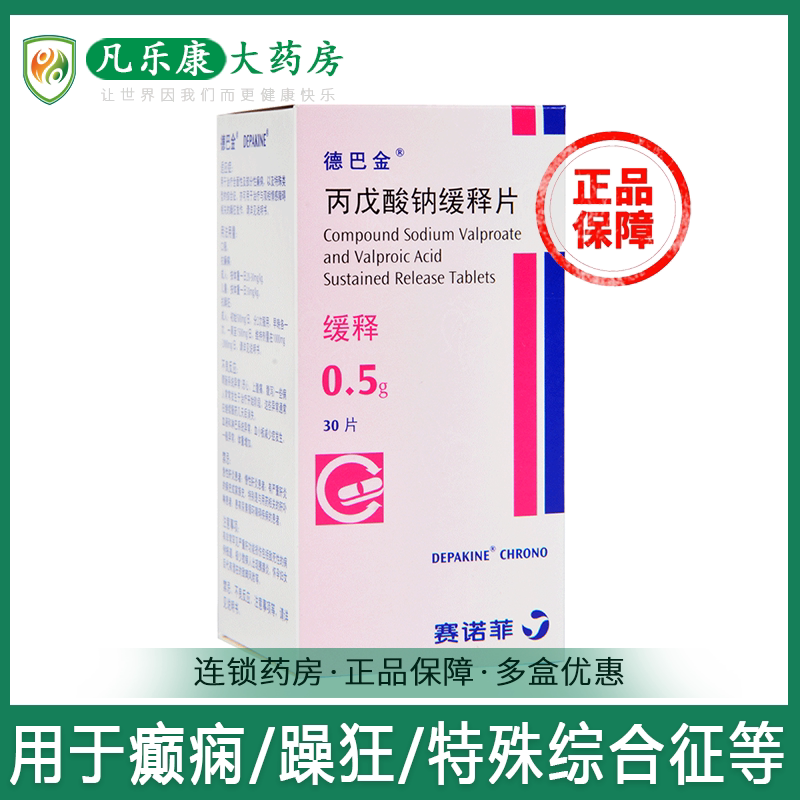 德巴金 Натрия вальпроат таблетки пролонгированного действия 0,5 г*30 таблеток*1 флакон/коробка ЮК эпилепсия аффективные расстройства ссоры слюноотделение судороги судороги нарушение сознания мания смешанная кома