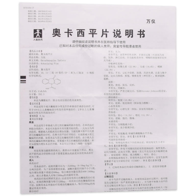 人福医药 Wanyi Okasi Ping Movies 0,3G*20 Таблетки/коробка подходят для индивидуального лечения или добавления лечения RX для частичных приступов эпилепсии взрослых