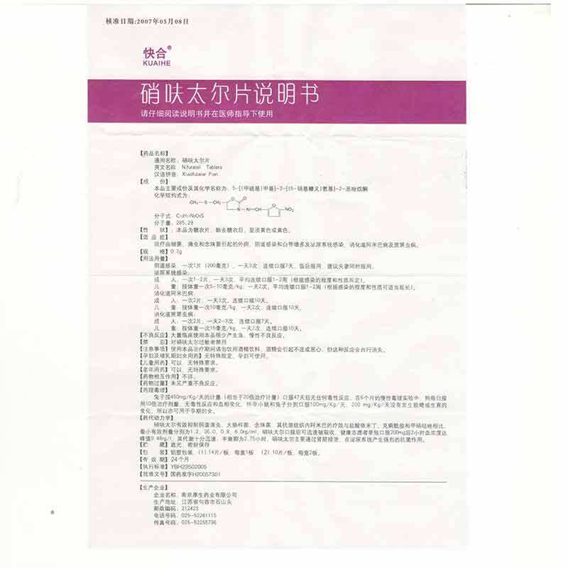 快合 Нифурател таблетки 0,2г*14 таблеток/коробка