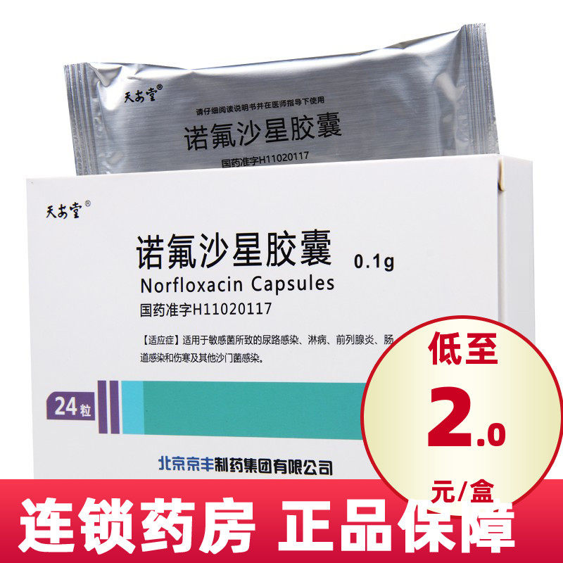 天安堂 Капсула норфлоксацина 0,1 г*24 капсулы/коробка подходят для инфекции мочевыводящих путей при инфекции гонореи и инфекции тифов S