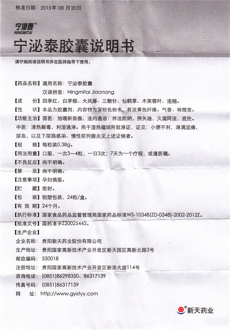 新天 Ningbi Thai Capsule 0,38G*24 Капсулы/ящик прозрачный тепло, детоксикация, влажная, влажная, влажная тепло, влажная тепло, сырость, моче