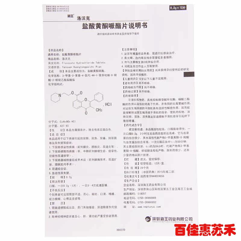 海王 Lomolkkac Гидрохлорид таблетки 0,2 г*12 таблетки/коробка подходят для частой срочности мочи, мочи, дизурии, недержания мочи, инфекционных заболеваний моче